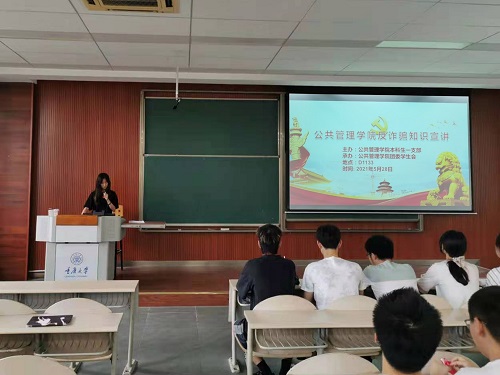 2021年5月18日,本科生一支部举办“学党史,跟党走,争做党的好青年”系列活动之“诚信大讲堂——在线色情