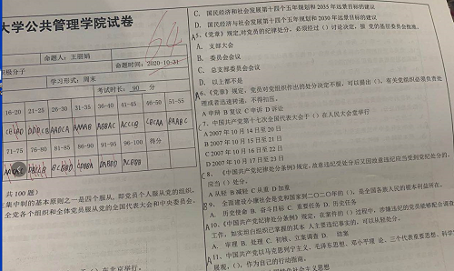 本科生一支部组织领导下,于D1137教室开展了2020级入党积极分子党章党史知识竞赛,以笔试的形式进行。本次知识竞赛由学院本科生一支部主办,学院团委学生会马研部和公管协会承办。支部书记王丽娟到场负责组织和监考。