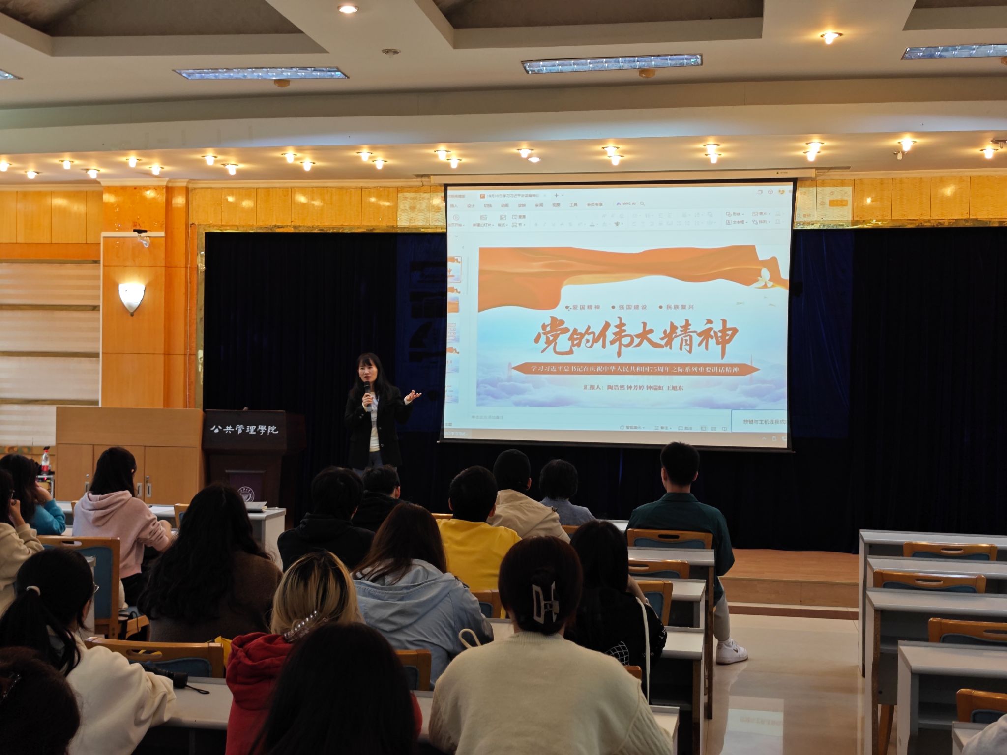 最后,徐柳老师鼓励大家持续坚持理论学习,充分认识新中国成立75年来经济社会发展取得的历史性成就,广泛学习宣传功勋模范的光辉事迹、非凡贡献,将个人小我融入国家大我,用公管青年蓬勃的爱国热情和奋斗精神把强国建设、民族复兴伟业不断推向前进。
