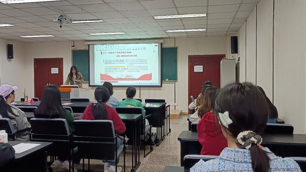 本科生二、五支部在学院楼106教室联合开展了《中国共产党纪律处分条例》专题学习。会议由本科生二支部书记徐柳、五支部书记陈致远主持,本科生二、五支部全体党员到场参加。