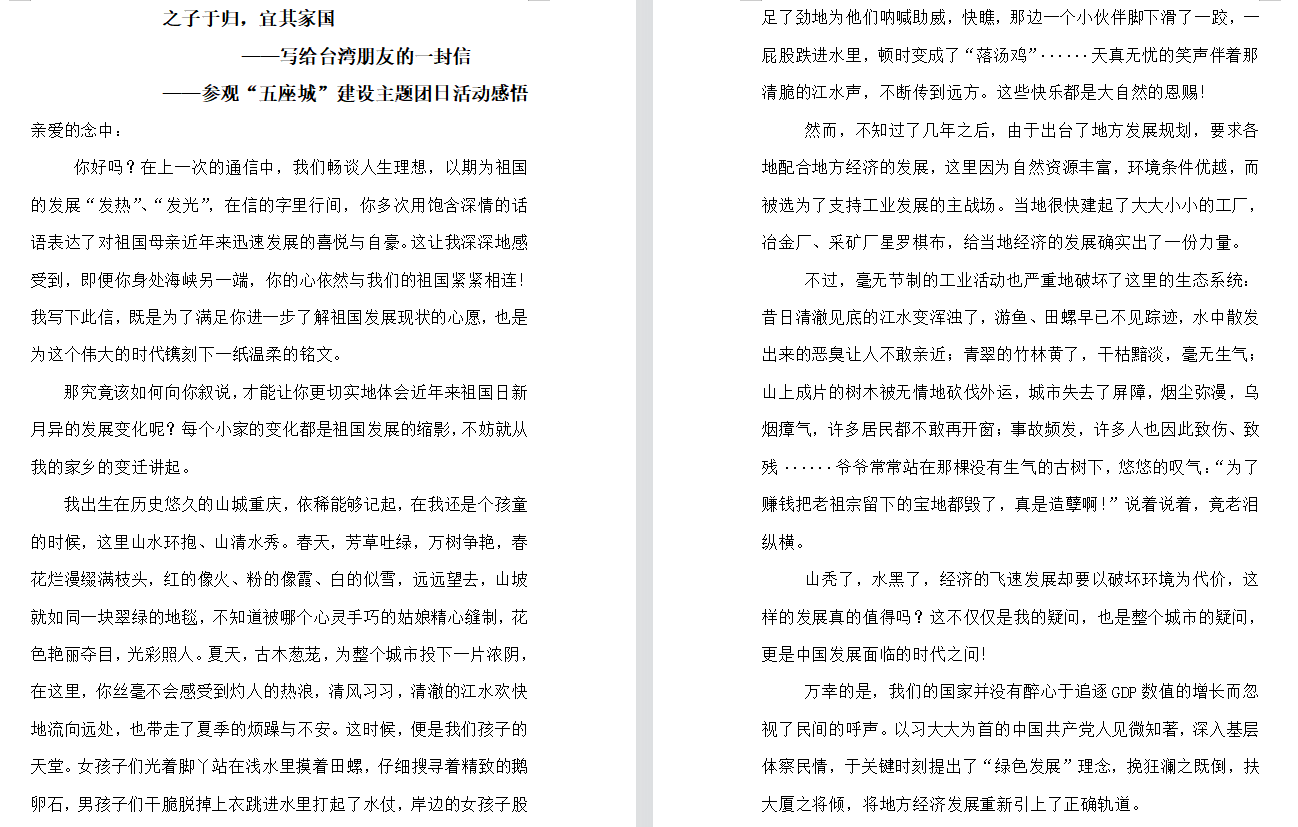 本科生一、四支部也通过实地研学等的方式进行了对重庆市“五座城”建设的参观学习,见证了重庆市在新发展阶段中响应中央号召,结合自身实际所做出的行动。
