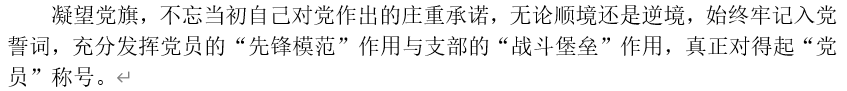唐颖欣同志表示:“凝望党旗,不忘当初自己对党作出的庄重承诺,无论顺境还是逆境,始终牢记入党誓词,充分发挥党员的‘先锋模范’作用与支部的‘战斗堡垒’作用,真正对得起‘党员’称号。”