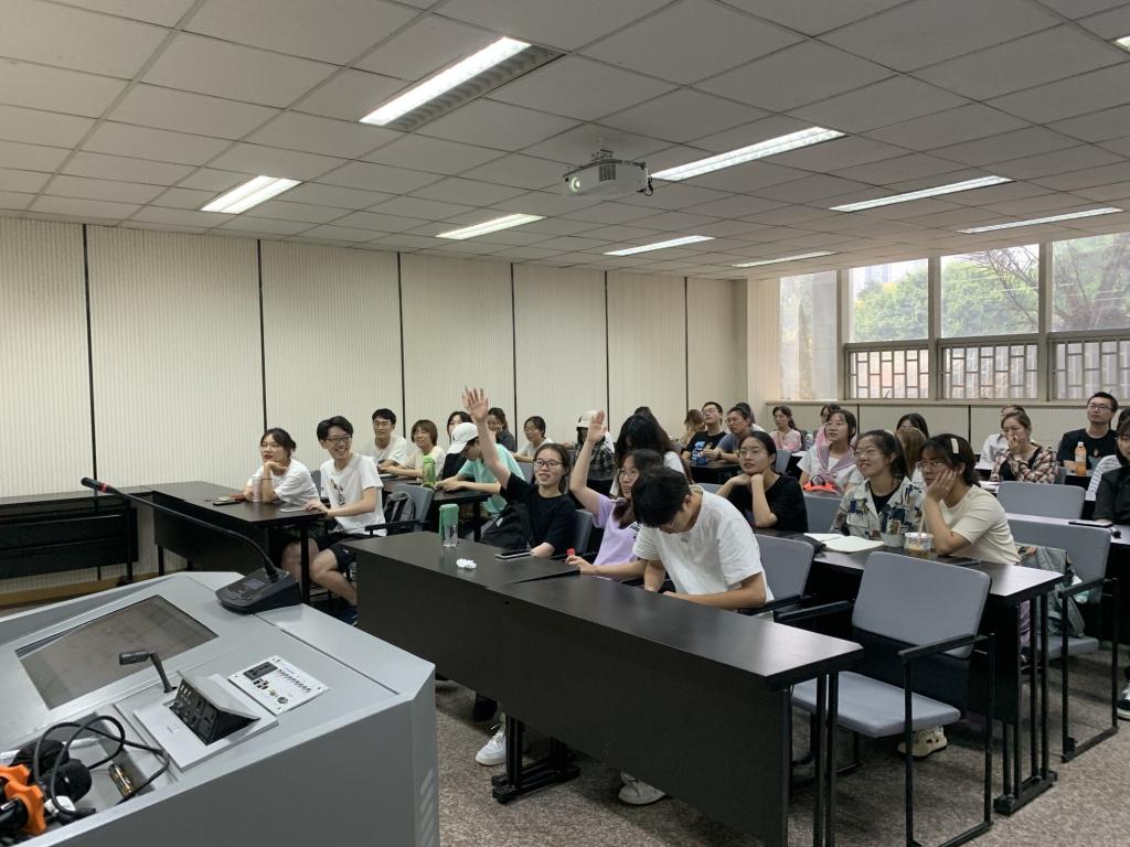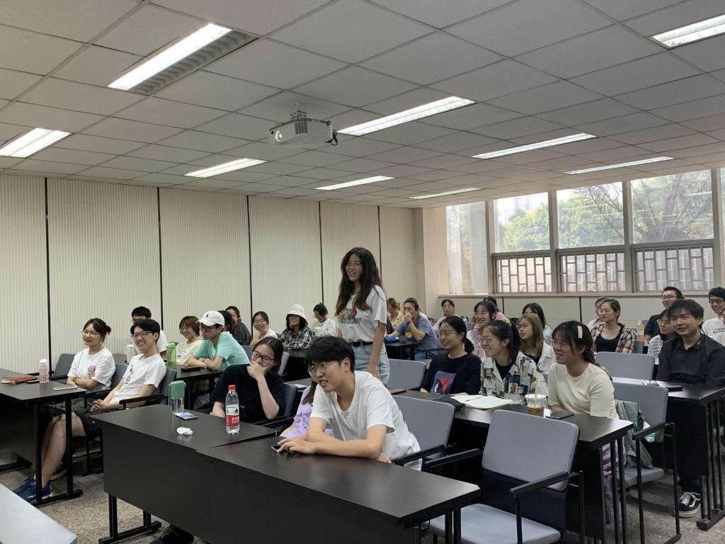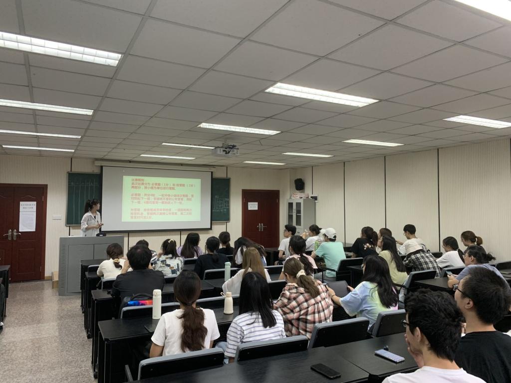 首先,主持人袁凤为大家介绍了比赛规则:此次比赛分为必答题和抢答题两部分,按小组为单位进行答题。必答题共分4轮,一轮中各小组依次答题,答对则轮下一组;答错或不答则公布答案,再轮下一组;6组均答完一题则进入下一轮。抢答题由各组成员举手抢答,一道题有两次抢答机会,答错两次直接公布答案,第二次抢答答对只加1分。大家听了比赛规则后纷纷摩拳擦掌,跃跃欲试。