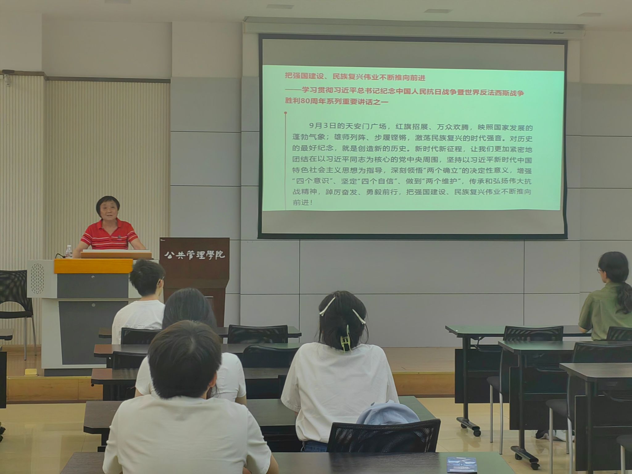 活动伊始,全体与会人员共同观看了相关纪念视频,回顾了中国人民抗日战争和世界反法西斯战争的艰辛历程和伟大胜利。随后,本科生一支部书记王丽娟带领大家学习了讲话原文,深入解读了讲话中关于铭记历史、缅怀先烈、珍视和平、开创未来的重要论述。
