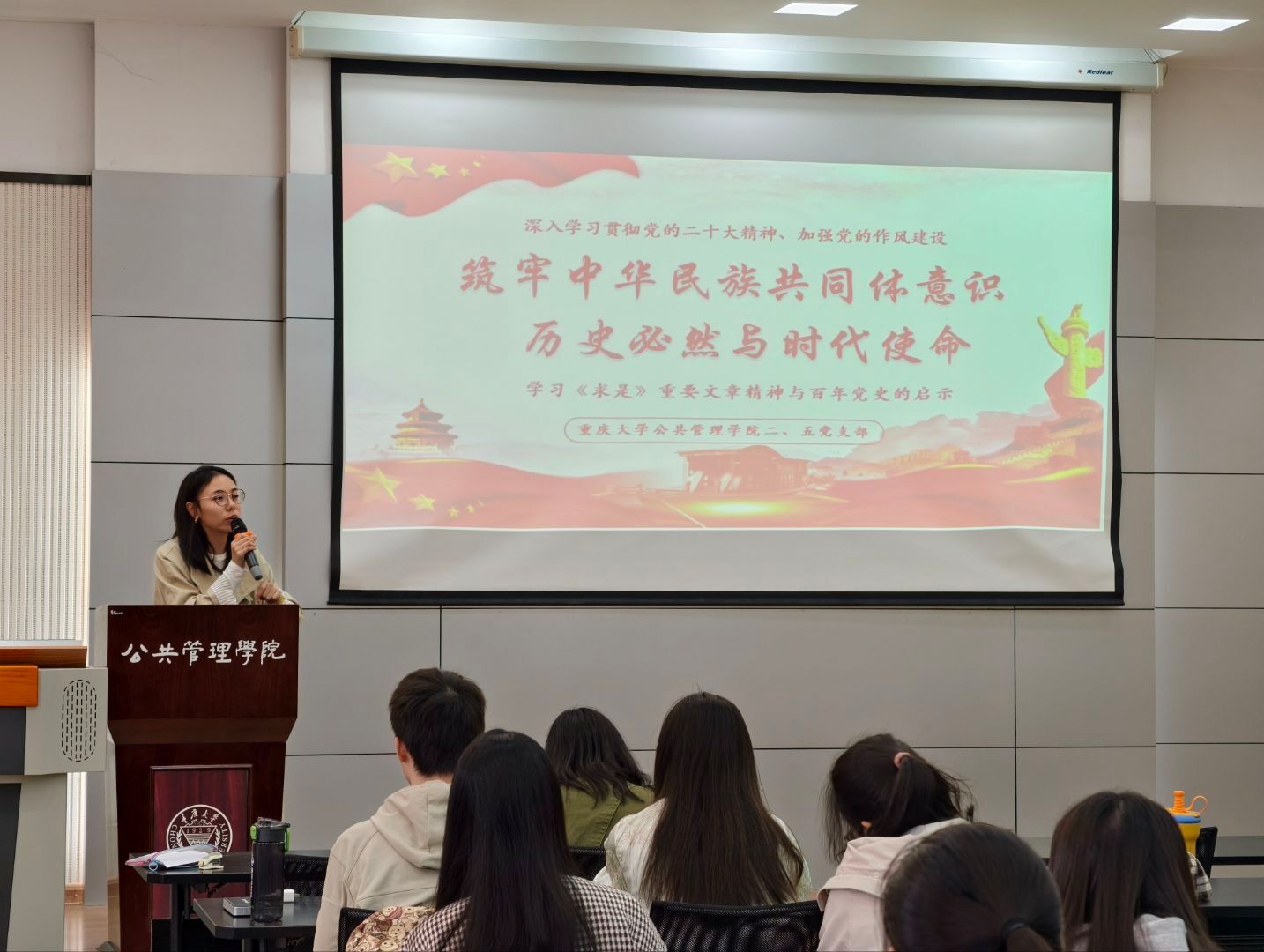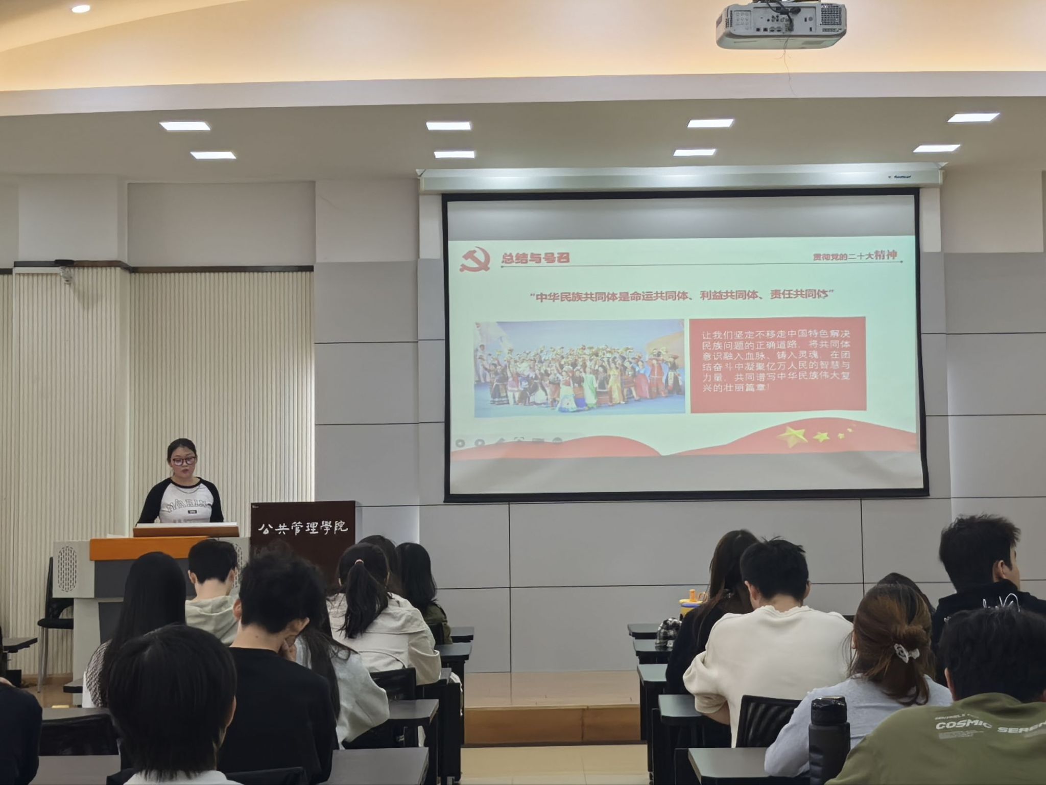 本科生二、五支部在学院楼102教室联合举办了“筑牢中华民族共同体意识,历史必然与时代使命”主题党日活动。本次活动深入学习习近平总书记在全国民族团结进步表彰大会上的重要讲话精神及《求是》重要文章精神,结合党史历程解读筑牢中华民族共同体意识的重大意义和时代使命。活动由本科生二支部书记徐柳主持,本科生五支部书记曹李思帆以及两个支部的全体党员和入党积极分子到场参加。