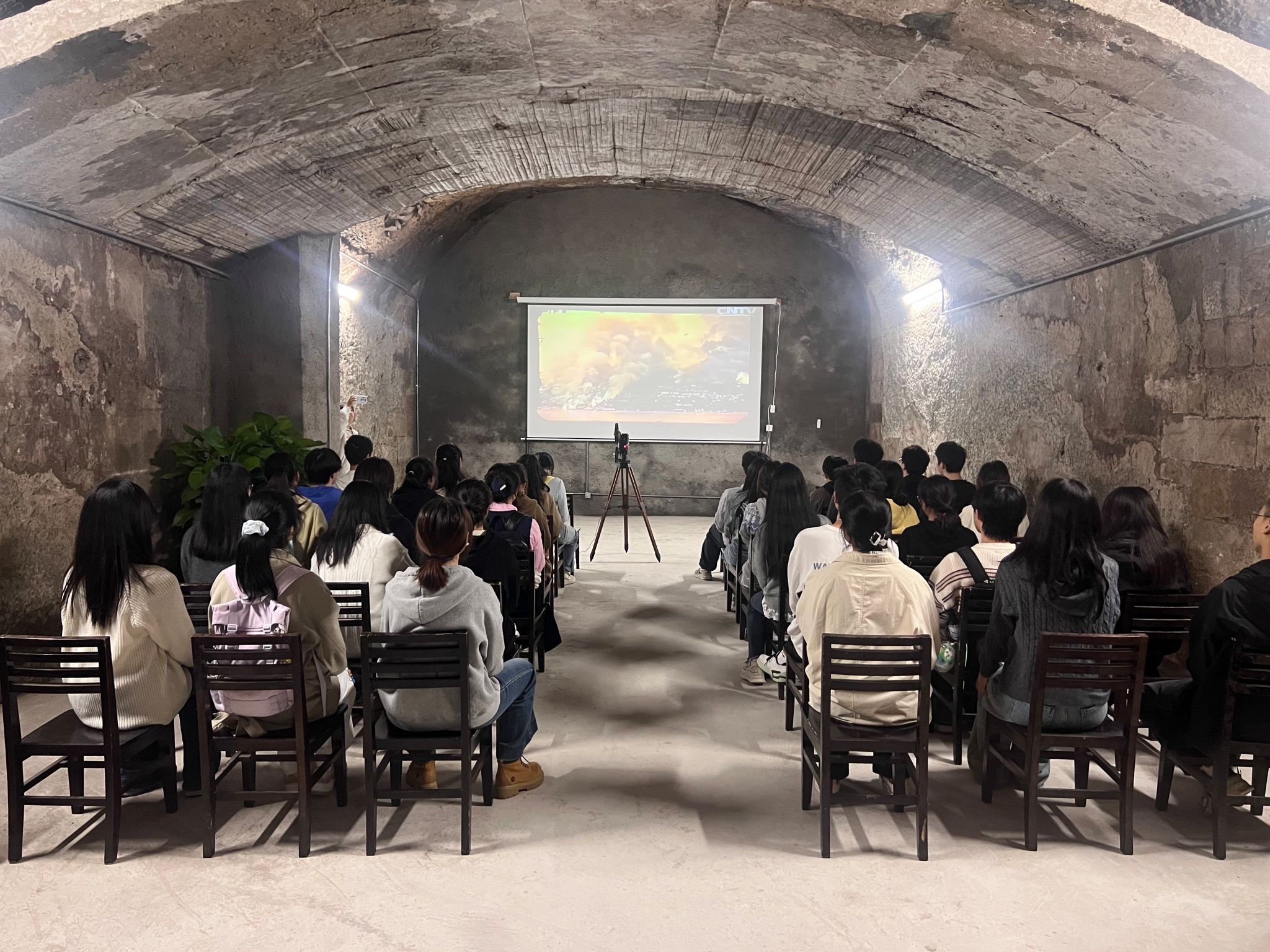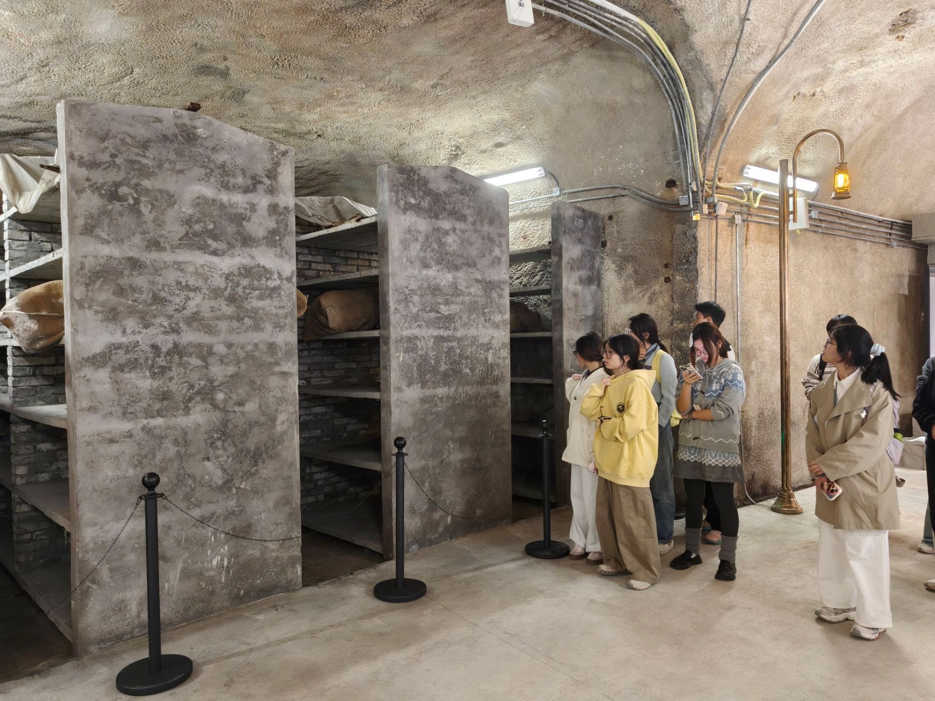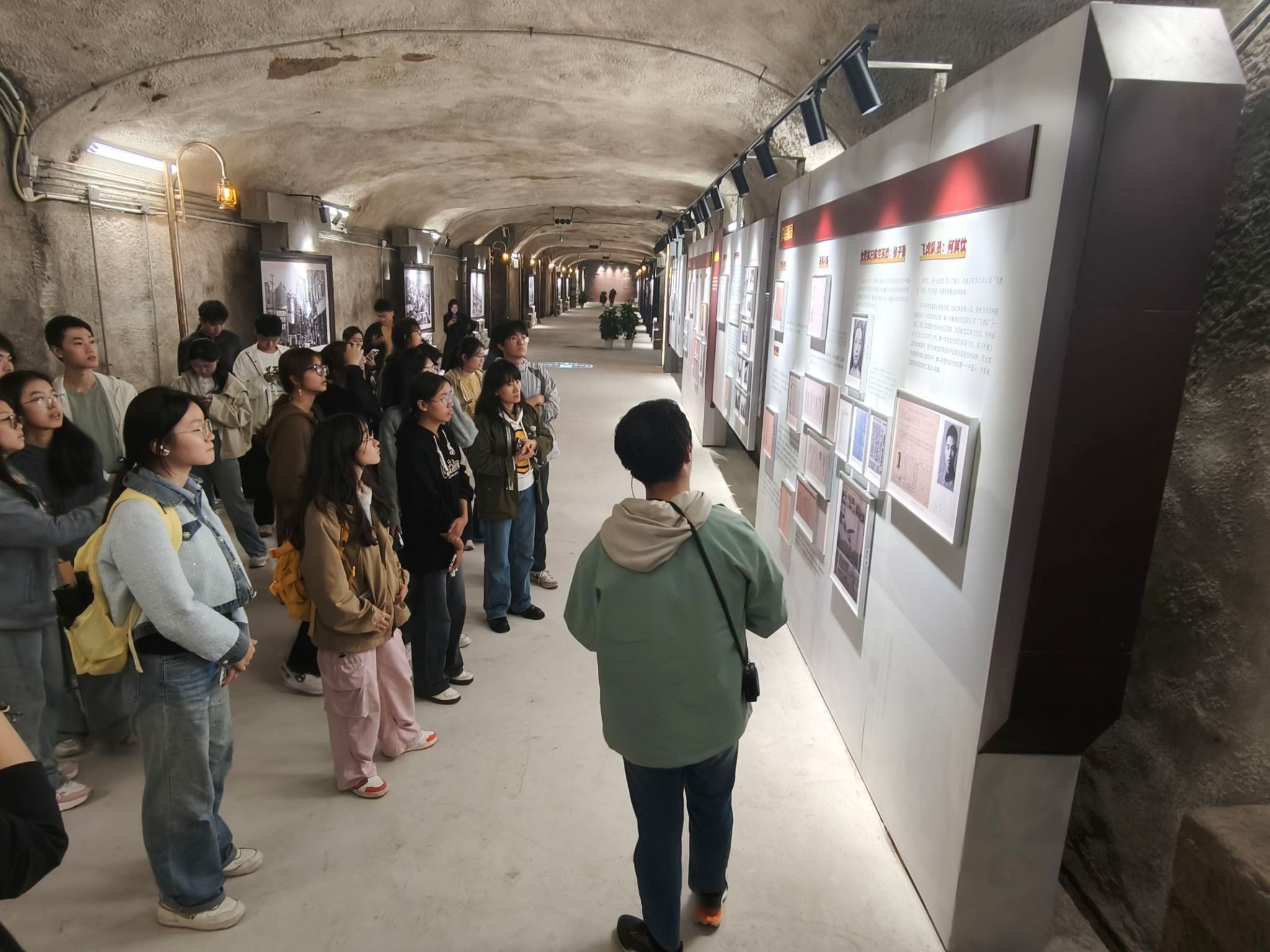 活动伊始,基地讲解员的声音轻轻推开了时光的闸门。随着脚步深入防空洞,潮湿的空气中仿佛还留存着战火年代的印记——泛黄的校史文献、定格着往昔的老照片,每一件实物都在无声诉说着在线色情