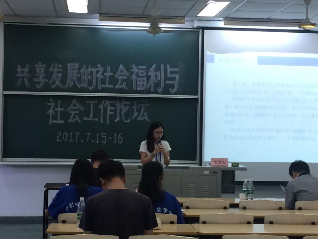 社会工作硕士(MSW)研究生出席论坛并在第一分论坛发言,所提交的论文《“个人”与“环境”的双重聚焦:生态系统视阈下的医患冲突机理与治理》获得研究生论坛三等奖。