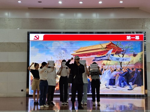 在上一轮的预赛中,共有14支队伍脱颖而出。在预赛的基础上,各个队伍分别对各自的作品进行了打磨、完善,在这个最终决战的日子里迎接新一轮的考验。14点整,班级风采大赛正式开始。大屏幕上首先播放了各个班级的宣传短片。带着对过去的回望,对现在的笃定,对未来的期许,三个年级的同学一同喝彩青春,庆党百年。