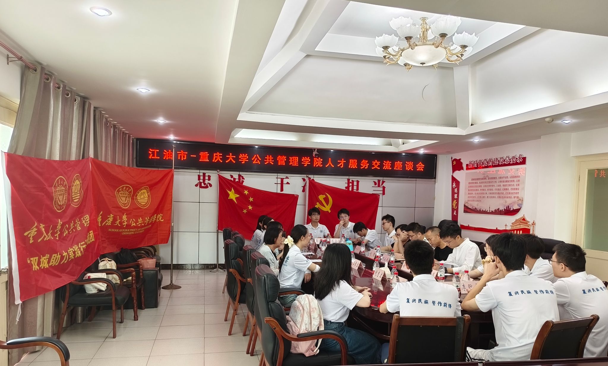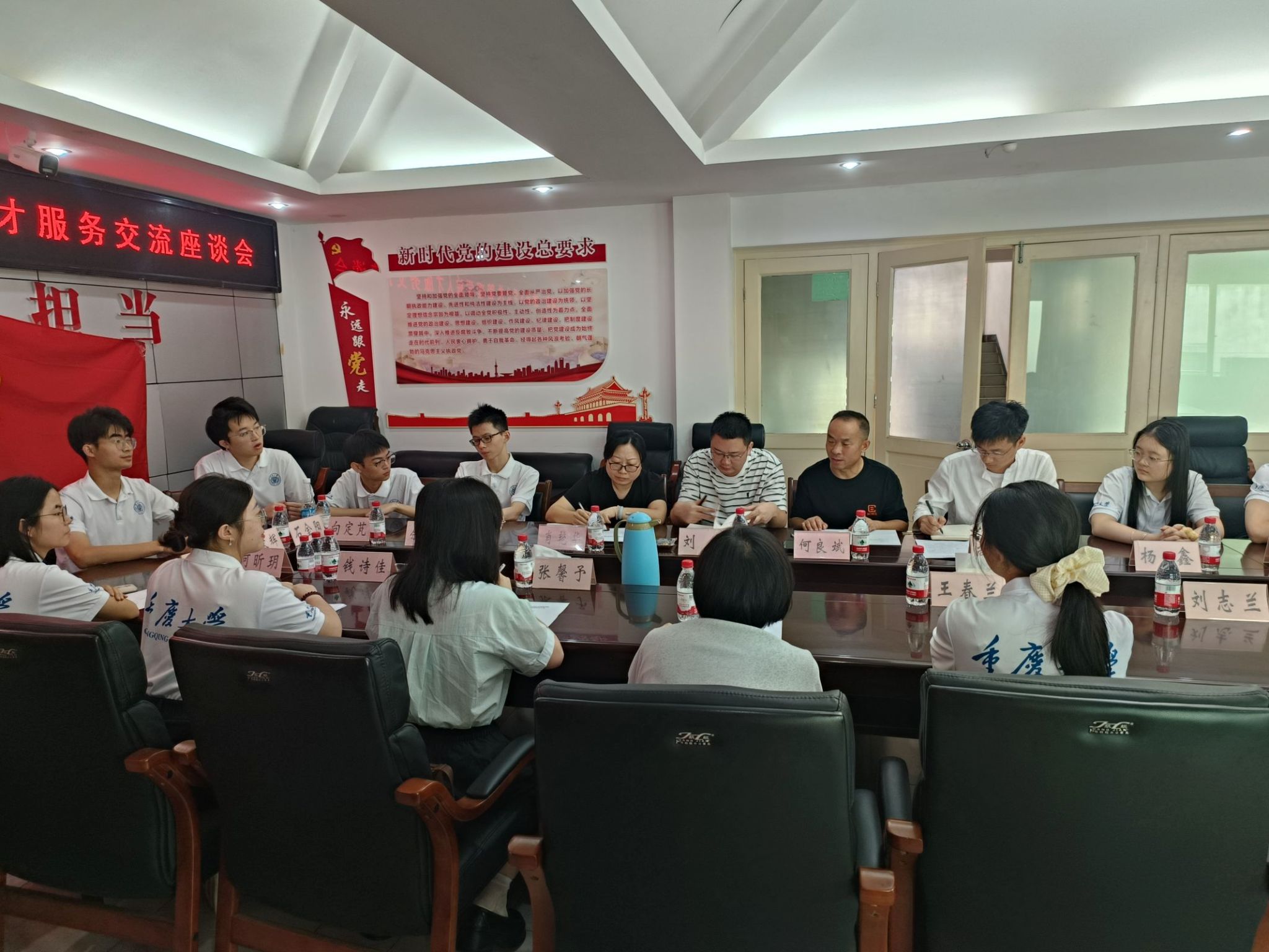“双城助力实践行”团队一行17人在本科生一支部书记、学办主任王丽娟的带领下,与江油市组织部、人社局、团委等部门领导齐聚四川省江油市人社局,共同举行人才服务座谈会。