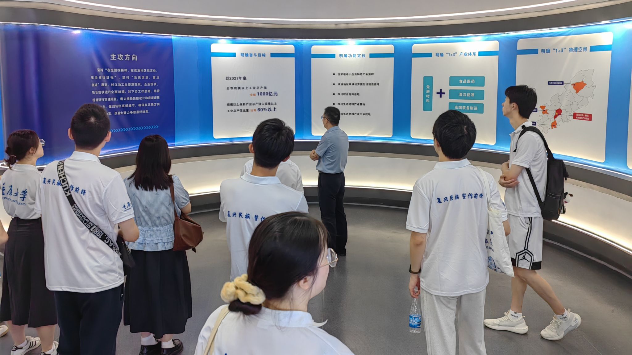 在实地考察过程中,实践团成员了解到江油工业史始于三线建设时期的攀钢集团等骨干企业,历经半个世纪发展,已形成以天然气化工、高端装备制造、新材料为主导的现代产业体系。展览馆通过实物模型、数字沙盘等载体,全景呈现其从传统冶金向清洁能源转型的历程;大家还留意到,江油工业的蓬勃发展离不开持续的人才引进与培养。展览馆中特别设置的人才引进成果展示区,详细介绍了江油如何通过一系列优惠政策、良好的工作生活环境,吸引了大量高端人才投身地方建设。