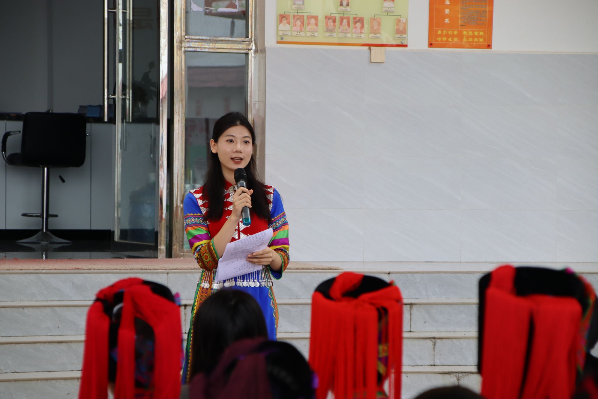 活动伊始,主持人蒋佳佳代表服务团发表了题为“家国同心,绿春同梦”的主题宣讲。她结合汉唐盛世、脱贫攻坚、抗震救灾等历史与现实案例,以及云南怒江独龙族整族脱贫、新疆棉田丰收等生动事例,生动诠释了各族儿女像石榴籽一样紧紧抱在一起,尊重差异、理解包容、担当作为、传承文化,方能实现“绿春同梦”的美好愿景。