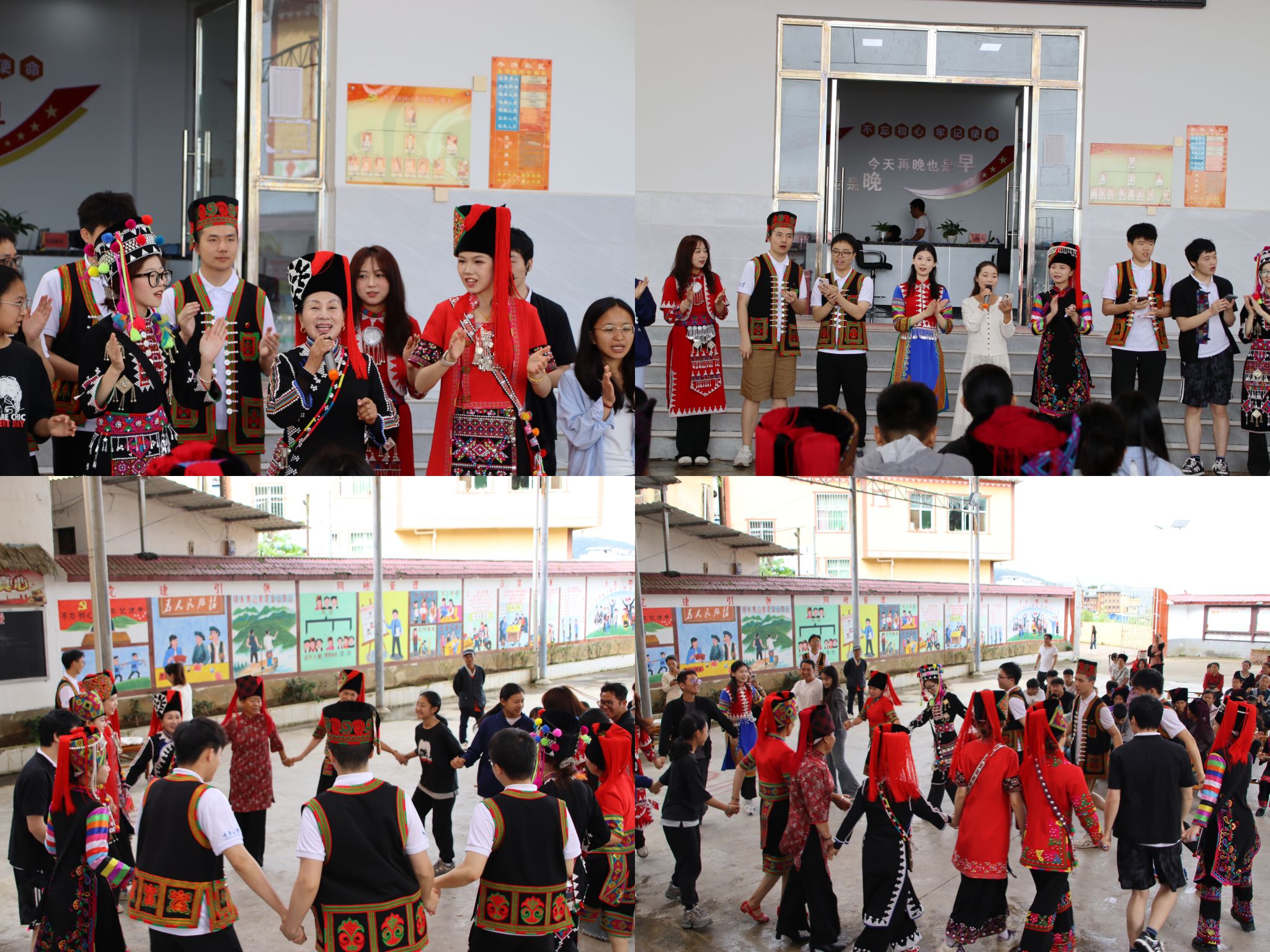 “民族歌舞交流学习”环节在悠扬的歌声中开启,巴栏服饰创始人白福抽首先献唱《阿以嘎们弄》,随后她与绿春一中朱莹菲老师一同带领全场学习民族歌舞。服务团成员们身着民族服饰,与社区居民手拉手,共舞《七月火把节》点燃了现场激情。最后,全体人员齐声高唱《歌唱祖国》,激昂的歌声响彻社区,表达了各族人民对伟大祖国的热爱和对共同梦想的追求。