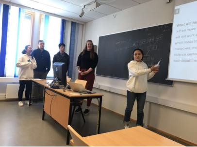 学生和挪威同学一起进行了小组汇报。用ppt加视频呈现的方式向大家讲解了中挪社会工作的异同点、挪威的福利模式等,向大家重点对比讲解了中挪临终关怀社会服务和庇护所服务的异同点。我们看到了在不同文化和社会背景下,人们在遭遇家庭暴力时的不同选择。第二组同学以ppt结合戏剧的形式向大家重点讲解了中国的留守儿童问题,由于两国的不同情境,挪威并未有留守儿童问题,采用戏剧表演便于挪威同学更好地了解中国的留守儿童问题。汇报结束后,双方老师都给出了中肯的评价与建议,思想碰撞出的火花使这次访学变得格外不同又有意义。