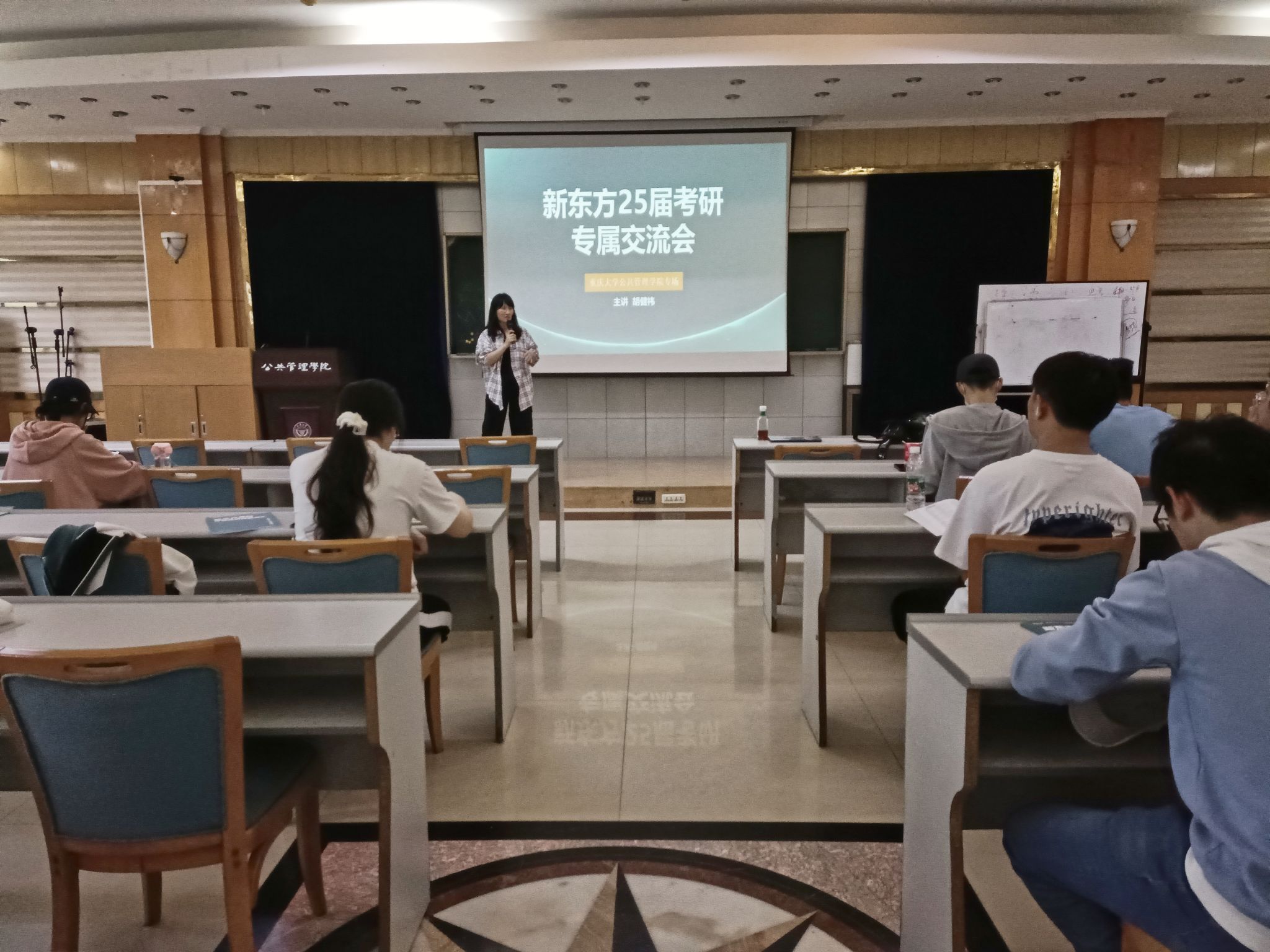 为了对2021级本科学生进行精准高效的目标规划和就业指导,学院从2023年9月开始将陆续开展大三年级的生涯规划与就业指导系列活动,继9月14日开展了第一场2025年考研形势和数据解析指导会后,10月10日下午17:00,学院又邀请到新东方的胡健祎老师在学院楼202多功能厅,为同学们带来针对我们在线色情