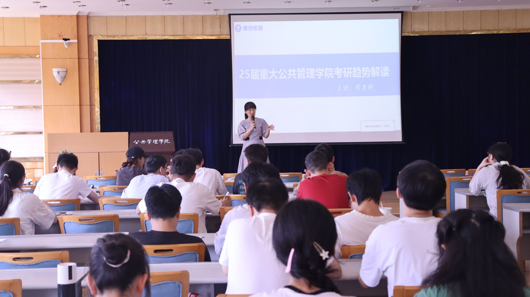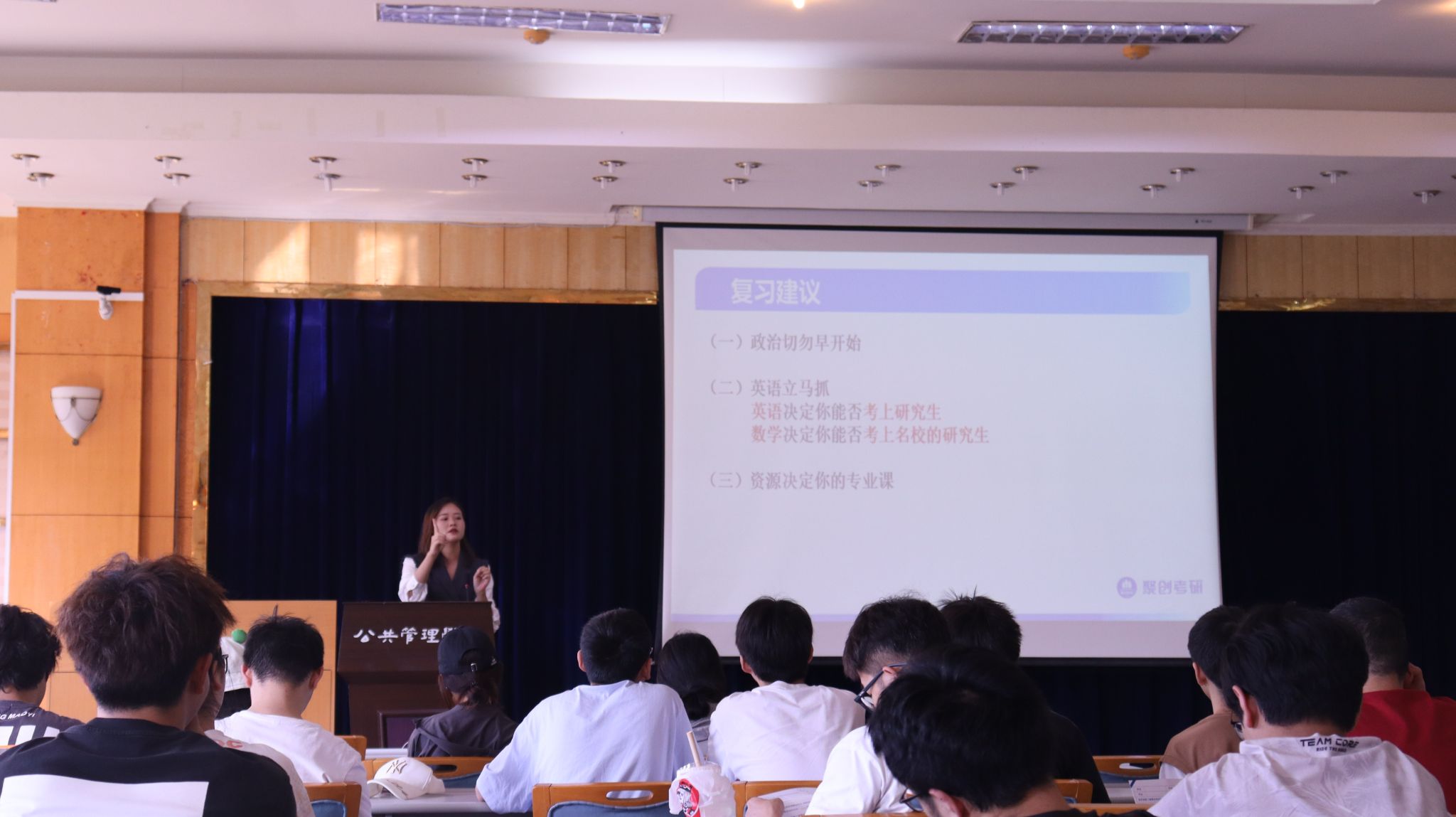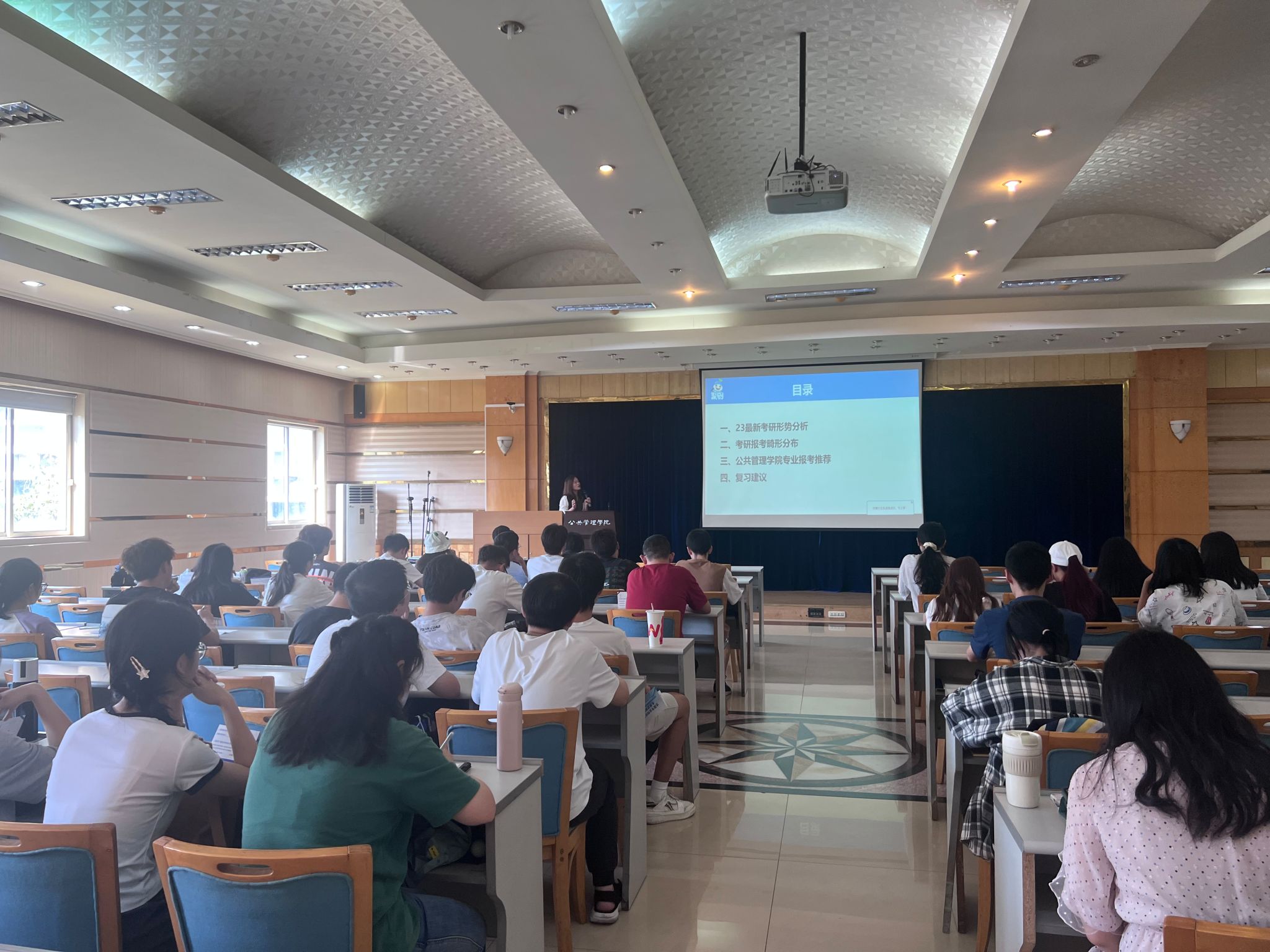 2021级本科生已经步入大三学年,为了帮助同学们进一步明确目标,有的放矢地努力,学院从2023年9月开始将陆续开展2021级本科生生涯规划与就业指导系列活动。9月14日下午15:00,学院邀请到聚创考研的舒婷婷老师,在学院楼202多功能厅为2021级本科生带来第一场关于2025年考研形势和数据解析的指导会。会议由学院团委书记兼21级辅导员徐柳老师主持,2021级100余名有考研升学意向的学生到场参加。