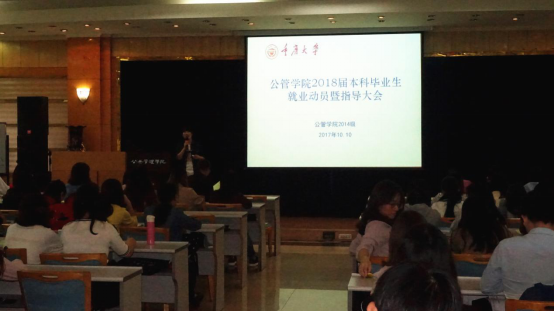 2018届本科毕业生就业动员暨就业指导大会在学院楼二楼多功能厅召开,2014级本科全体同学准时到会。2014级辅导员徐柳老师主持了本次会议。