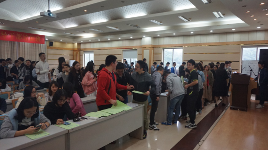 会议开始前,同学们排队依次领取就业协议书和《就业指南》,徐老师对其使用和管理进行了介绍并着重强调了协议书的重要性,提醒同学们妥善保管和填写。