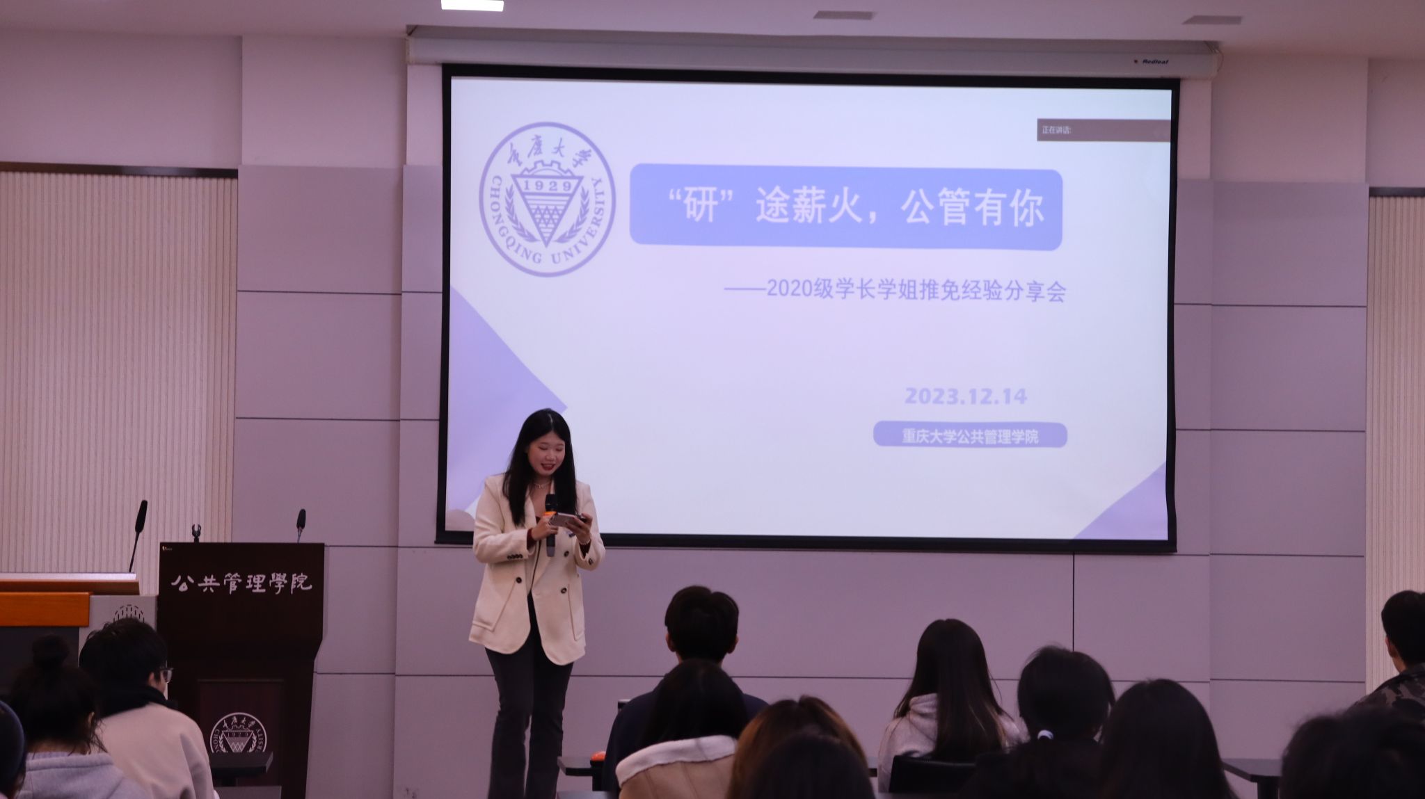 于学院楼102室举办“研途薪火,公管有你”2020级推免生经验分享会。2020级的郭佳良、包轩豪、王晓曼、杨洋、王鑫宇、张源六位来自不同专业的优秀学长学姐们为到场同学分享了他们的保研心路历程与保研经验。学院团委书记兼2021级辅导员徐柳老师出席了本次活动。