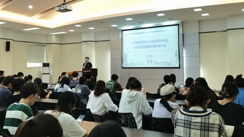 2023928日下午,在线色情 2024届本科毕业生就业动员会暨新学期年级大会在学院102多功能厅召开。学院全体2024届本科毕业生参加会议,2020级辅导员包晗主持会议。