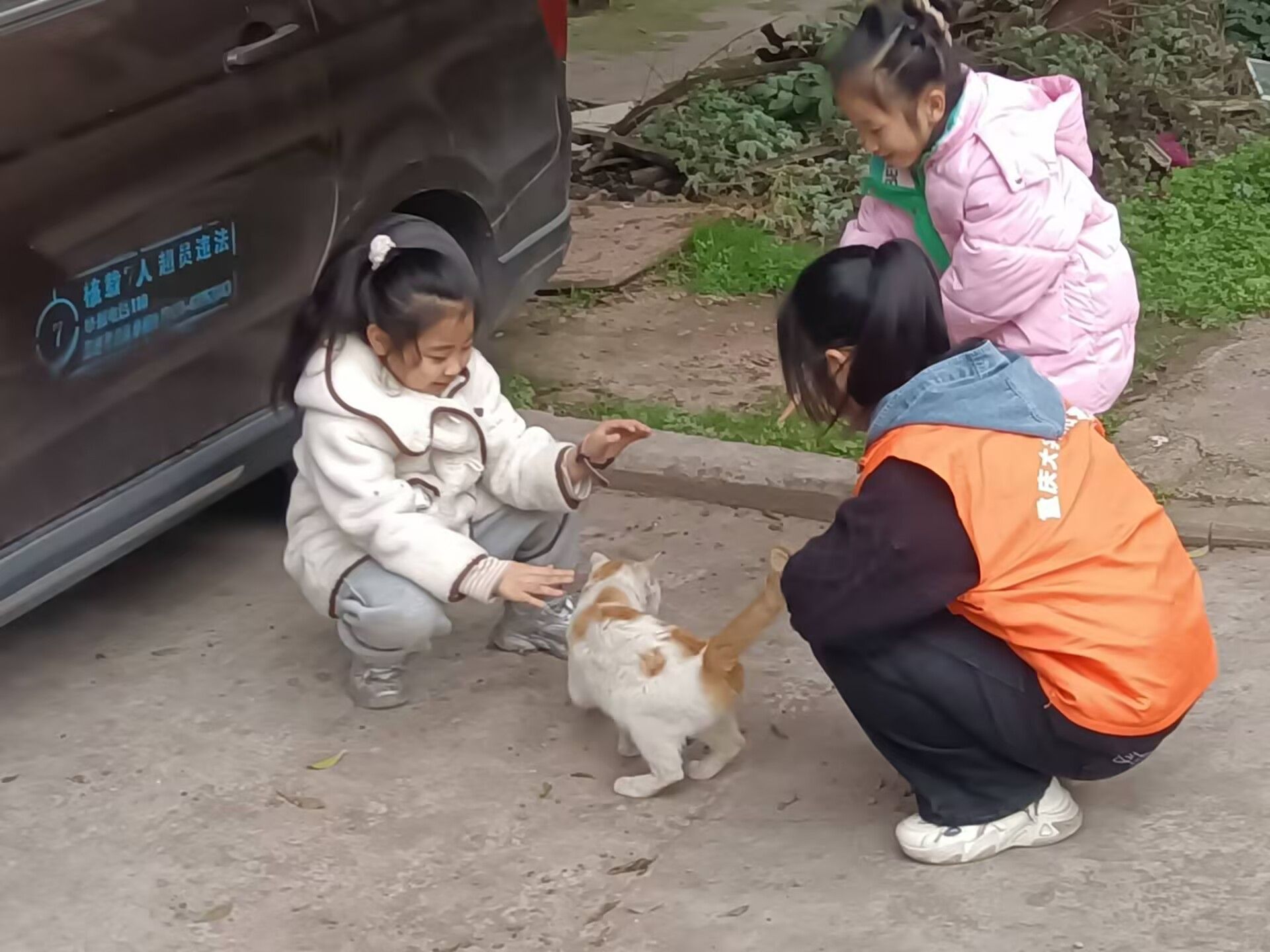 活动现场,志愿者们与小朋友共同制作黏土玩偶、折纸花等作品,通过互动激发孩子们的创造力与动手能力。活动中大家还与小流浪猫趣味互动,孩子们在志愿者的引导下轻柔抚摸、投喂猫粮,学习关爱小生命的责任感。现场欢声阵阵,孩子们的笑容与小猫的活泼身影交织成暖心画面。