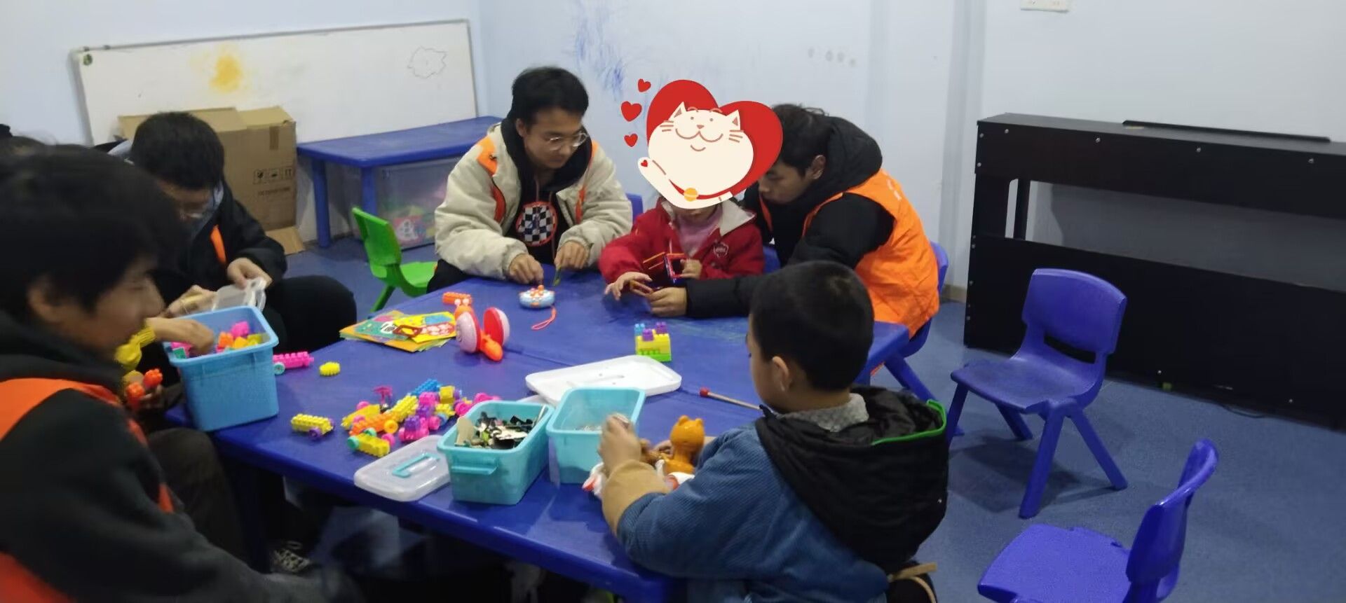 在这次活动中我们加入了新购买的玩具,给小朋友和志愿者带来了不一样的体验。平时一个非常活泼的小女孩,在拿到新玩具后,爱不释手,乖乖地坐在凳子上开心地完了一下午,变得十分老实本分。有的小朋友甚至为一个玩具争了起来,但志愿者及时解决了纠纷。冬天来了,为避免着凉,这次大家没有坐在地上玩了,而是坐着围在一张大桌子上一起热热闹闹地玩。我们还发现,康复中心来了一个新小朋友,他性格有些孤僻,不愿意与人靠近,通过志愿者做工作,也随着他对新环境的熟悉,他也很快融入到大家的活动中。