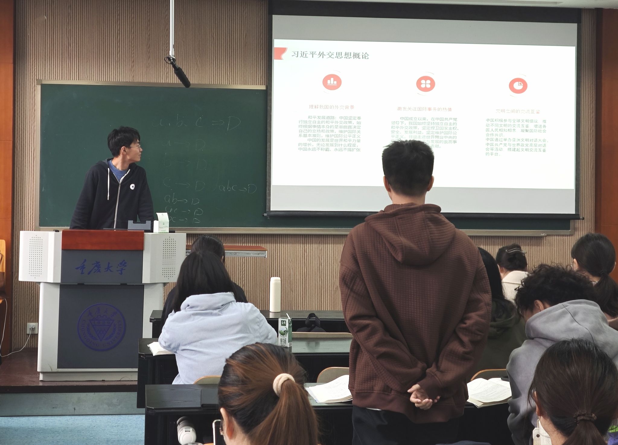 活动伊始,团支书向同学们全面讲解了习近平外交思想。他结合生动案例,深入浅出地阐述了国家改革发展的历程,并倡导大家积极响应党中央关于构建人类命运共同体的伟大倡议。