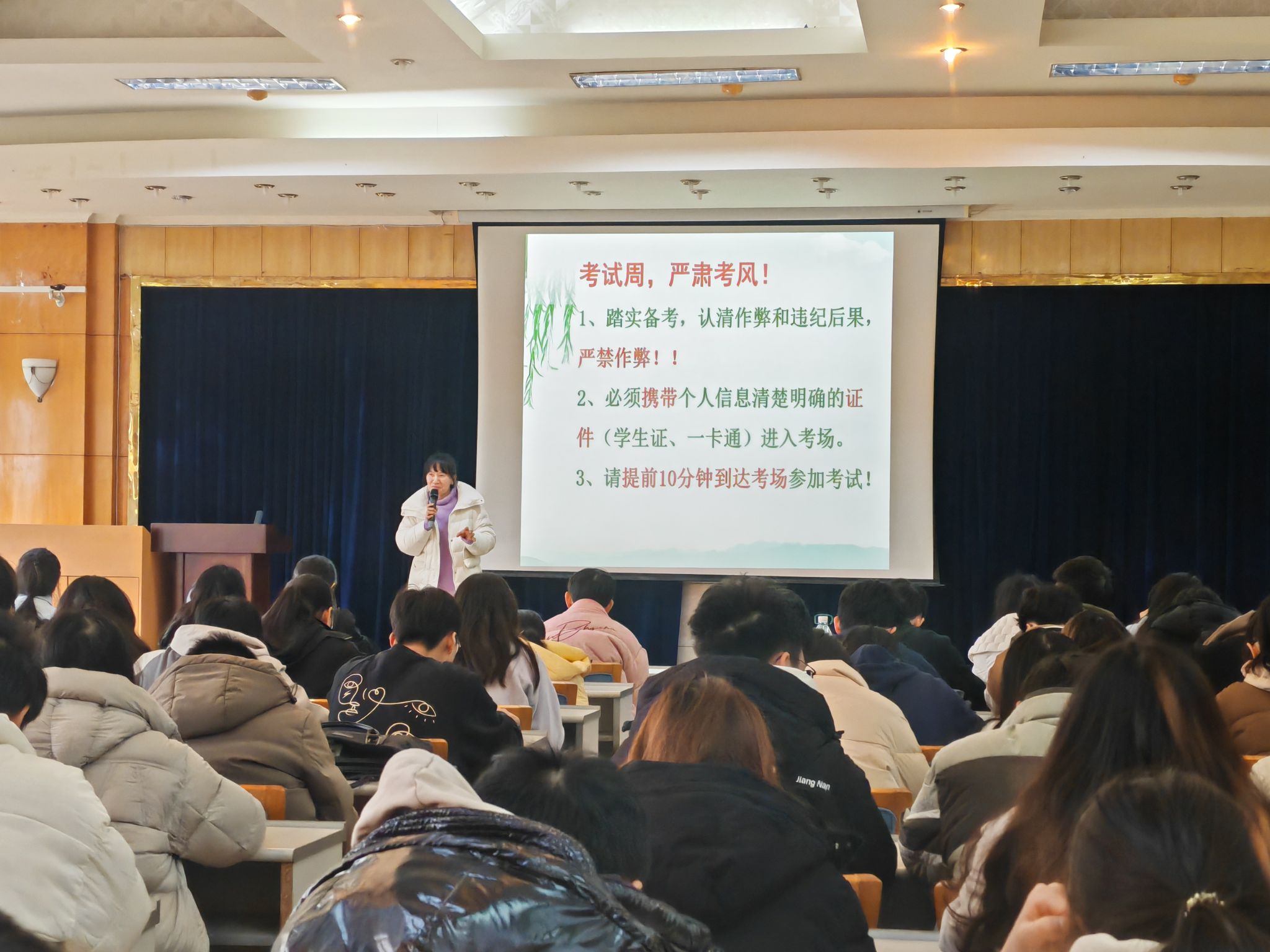会议伊始,徐老师就强调了加强学风建设和严肃考风管理的要求,提醒同学们一定要踏实备考,认清作弊后果,杜绝一切作弊和违纪行为。