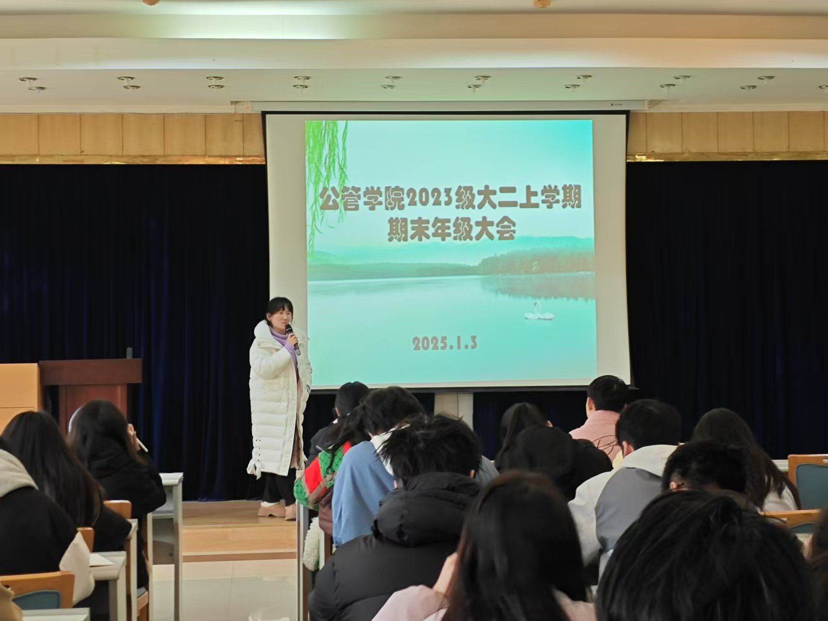 通过本次年级大会,相信同学们一定能认真总结本学期自己学习、生活和其他方面的表现,在寒假期间养精蓄锐、调整状态,合理规划假期时间和学习计划,在下学期的学习生活中脚踏实地,砥砺奋进。祝愿所有同学们2025年有新的气象,新的进步!