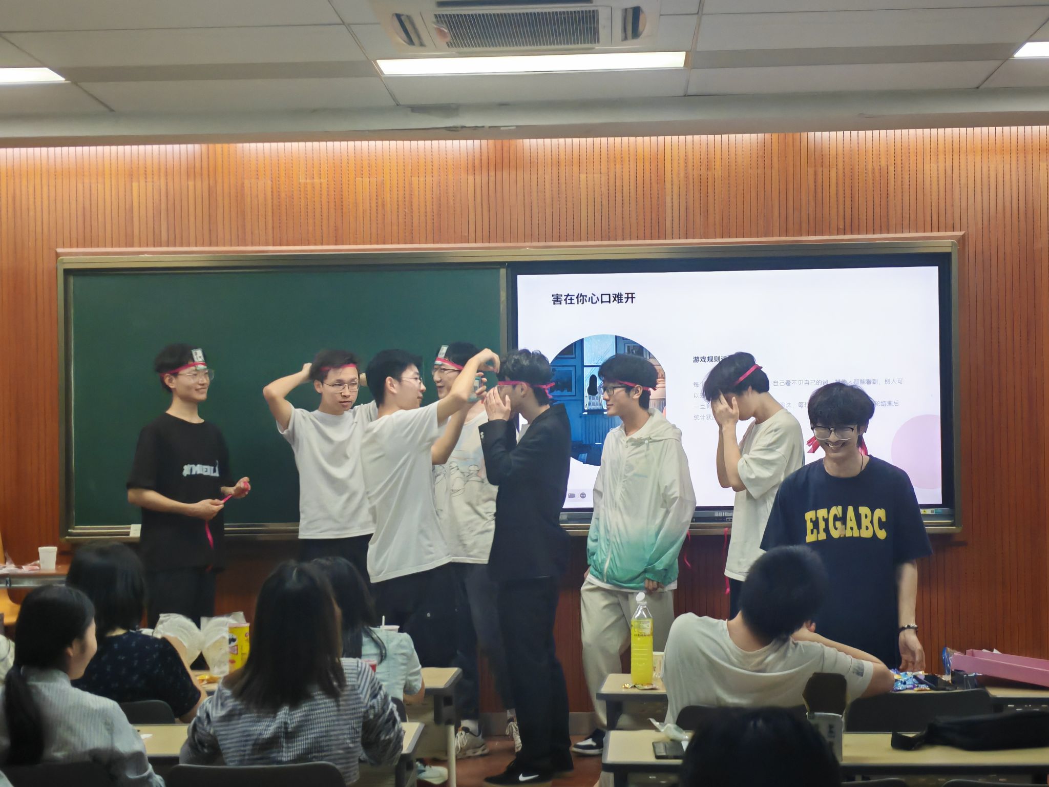 团支书发言结束后,进入游戏环节,本次社庆准备了三个游戏,通过自愿上台或击鼓传花选出参与游戏的选手,一起完成了“风吹草动”、“闹钟炸弹”、“你来我往”、“害在你心口难开”、“朗诵者的基本素养”等游戏,我们在欢声笑语中庆祝向阳爱心社的又一岁生日,参与游戏的同学也获得了丰富的小礼物。在游戏中,社员们的关系进一步拉近。每个游戏的中间,我们也穿插着抽奖的环节,我们为大家准备了小电扇、充电宝、耳机等精致奖品,通过微信小程序现场扫码开奖,来抽出我们向阳爱心社的好运锦鲤,希望大家好运常在、笑口常开。