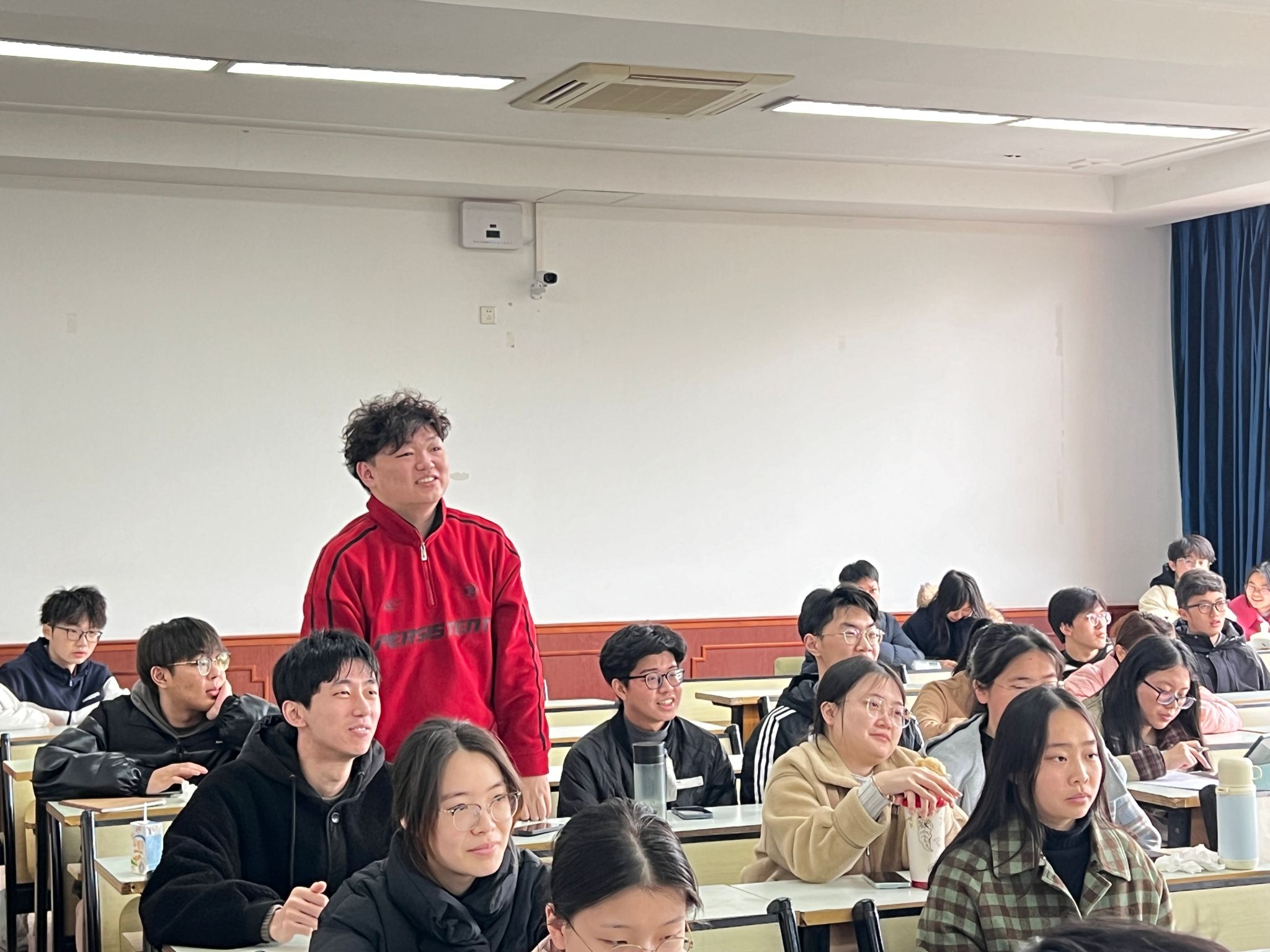 随后,各位同学积极发言,发表感想。黄浩哲同学表示,作为经济学专业的学生,我们要积极学习专业知识和党的法治思想,做遵纪守法,敢为人先的时代新青年,为国家的经济发展贡献自己的智慧和力量。王焙琪同学则从“科技创新”的角度出发,提出在发展新质生产力时,青年需以“强国有我”的担当,在科技创新发展中勇立潮头,并且保持积极乐观的心态和坚定的信念,勇于挑战自我、超越自我。同学们也纷纷表示要珍惜青春时光,不负韶华,努力成为新时代的奋斗者。