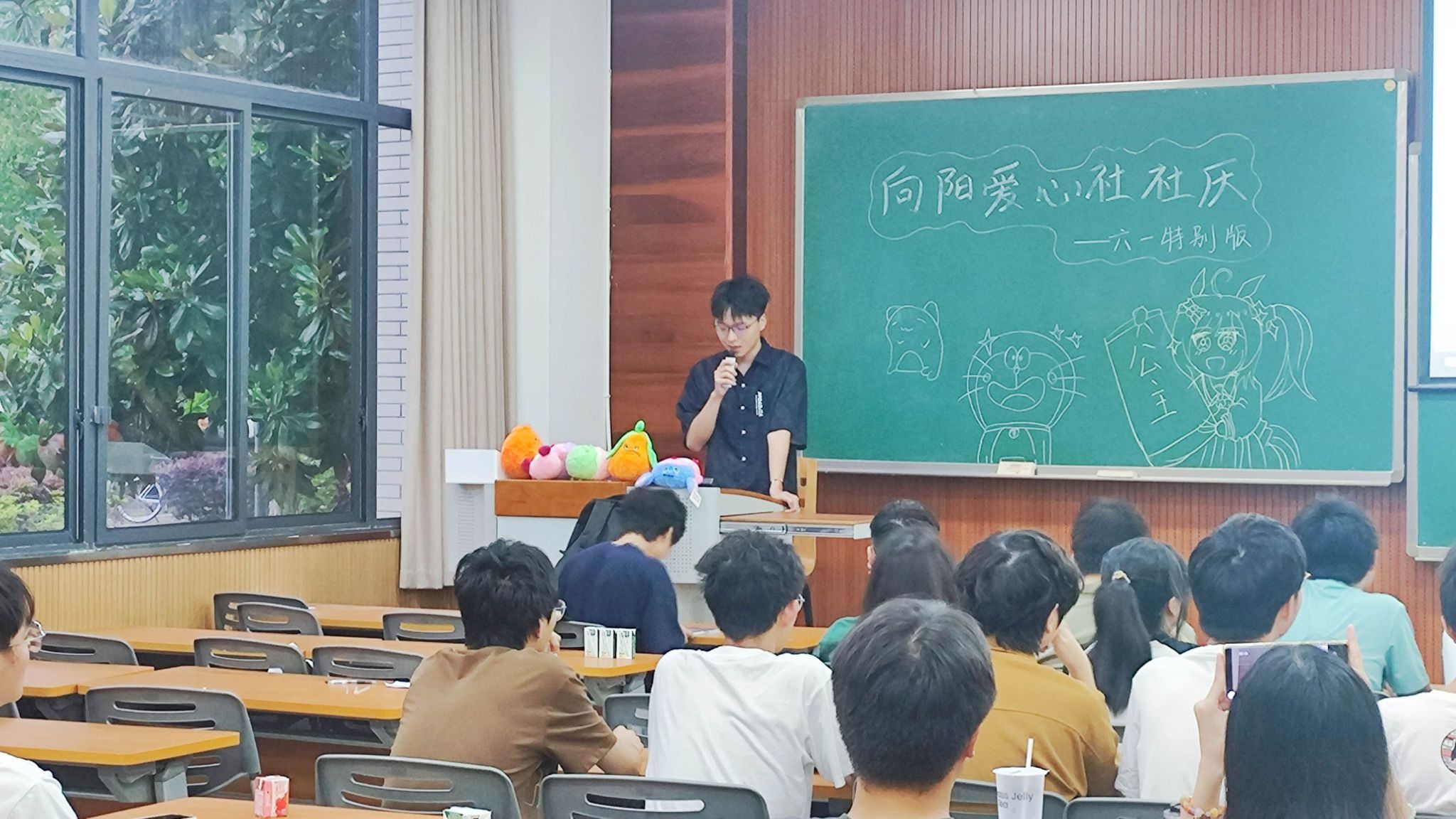 本次社团庆典由刘梦瑶、陈振浩、年兴瑞、郭津诚、刘丹丹、廖晨旭、程星妍、尹煌、张潇同学策划组织。在庆典开始前,参与的同学将写有自己名字的纸条投入票箱参与后续抽奖。社庆开始后,20级金楠学长回望了自己在向阳爱心社的收获,并为所有社团中的学弟学妹送上了暖心的祝福。