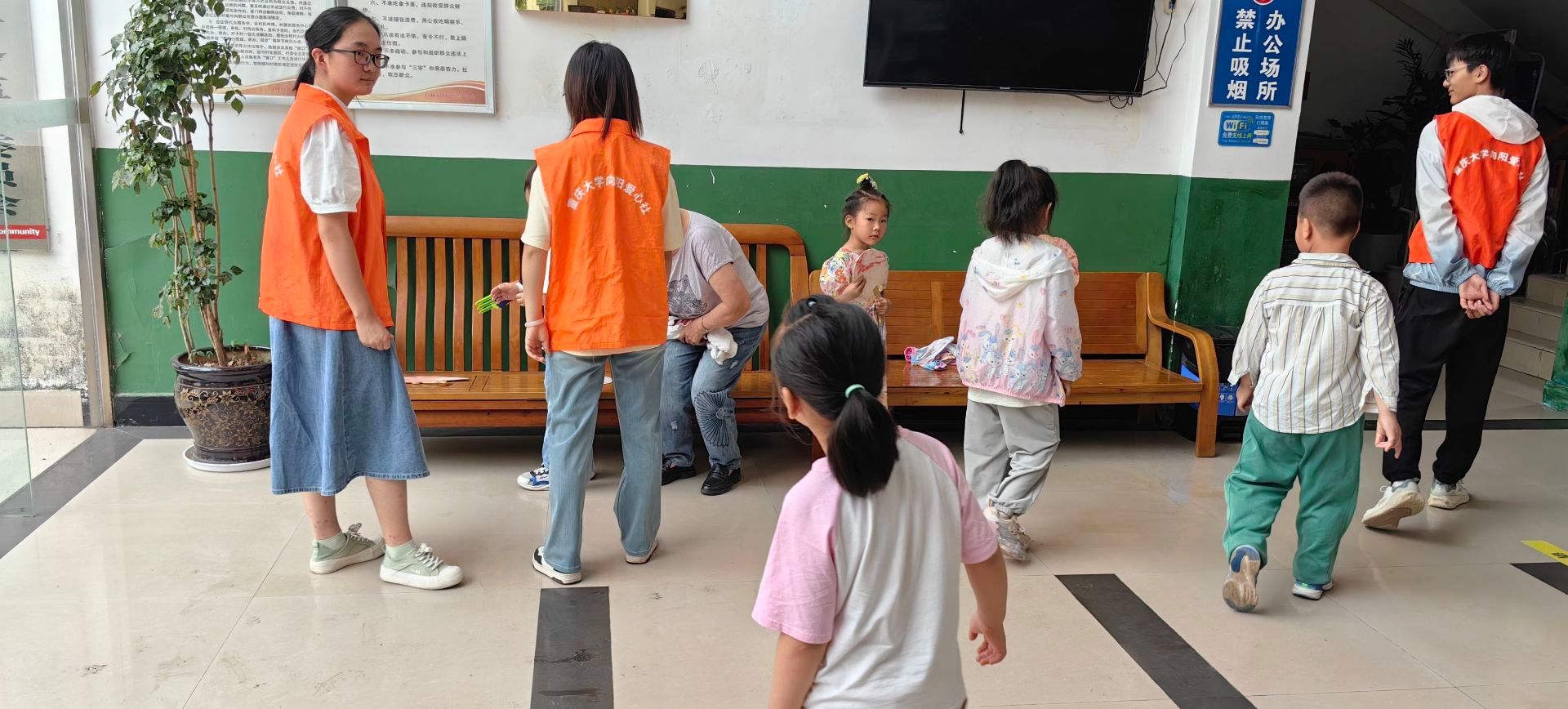 此次安林行活动,与民俗社合作,共同举办。策划组邀请民俗社的同学们,将传统文化带给他们。两个社团分工明确,策划组负责准备材料,包括颜料、团扇、书签和厨房纸等,民俗社则负责带领志愿者们和小朋友们一起学做漆扇,在动手过程中感受传统文化的美妙。