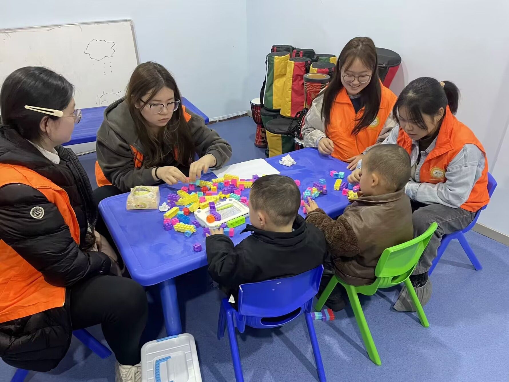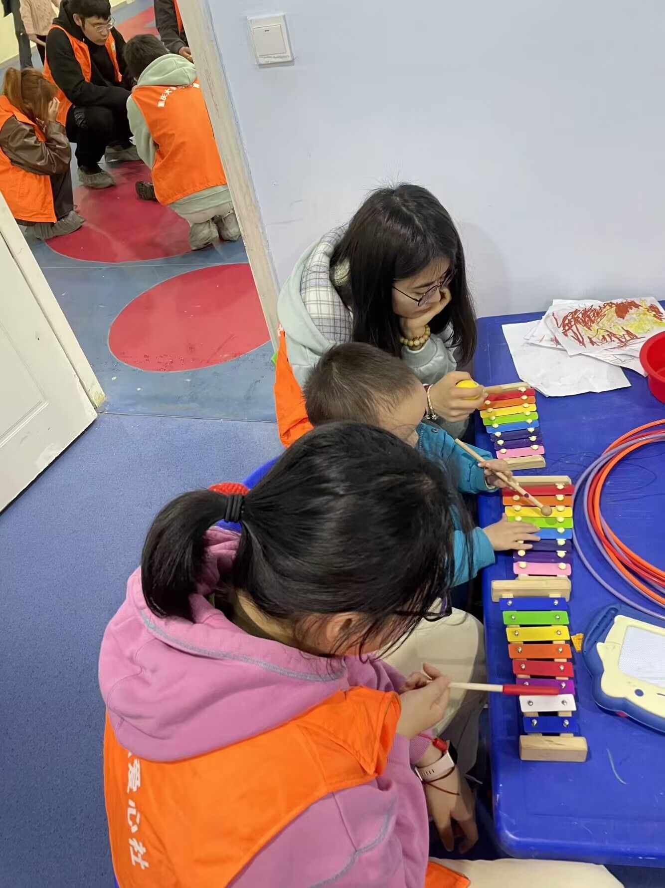 在活动过程中,志愿者和孩子们在相处过程中出现了许多暖心有爱的场面。在志愿者陪伴小朋友时,很多孩子不知道玩具该怎么玩,志愿者们在耐心给他们演示的同时也体会到了在小玩具中蕴藏的童心;也有志愿者用纸折出好看的纸花给小朋友们;还有志愿者教小朋友们一起唱歌,一起演奏小乐器;在小朋友们唱歌演奏或者投篮成功时,志愿者们也为他们送去了响亮的掌声。