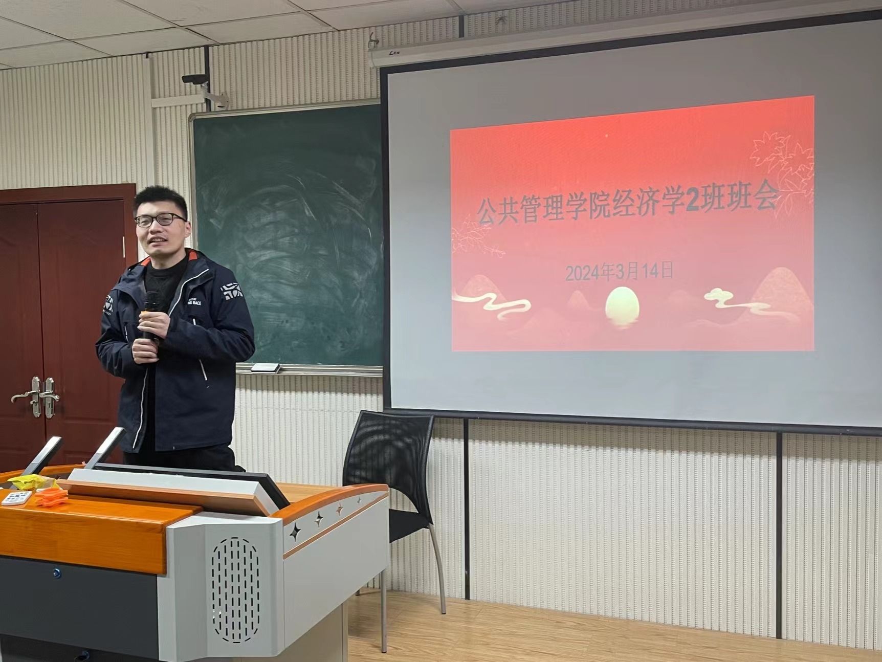 2022级经济学2班2023-2024下学期第一次班会在学院楼104顺利召开。本次班会由2022级经济学2班班主任党敬淇老师主持,经济学2班全体同学参与。会议分为自我介绍、建议和交流答疑三个部分,展现出了班级的团结和活力。