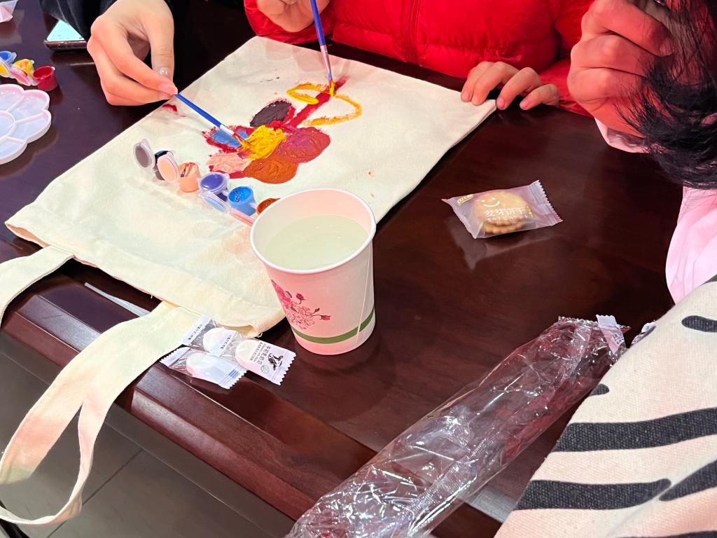 临近春分时节,本次农安行活动的主题是“彩绘春意,寻味清欢”,希望通过绘画带领小朋友们感受春天的色彩斑斓。志愿者们提前准备了不同大小的白色帆布袋,与小朋友们一起进行彩绘,制作属于小朋友们自己独一无二的帆布袋。小朋友们被春意感染,不约而同的选择花朵作为绘画素材。同时,有绘画功底的志愿者们也给小朋友们绘制了专属的帆布袋。