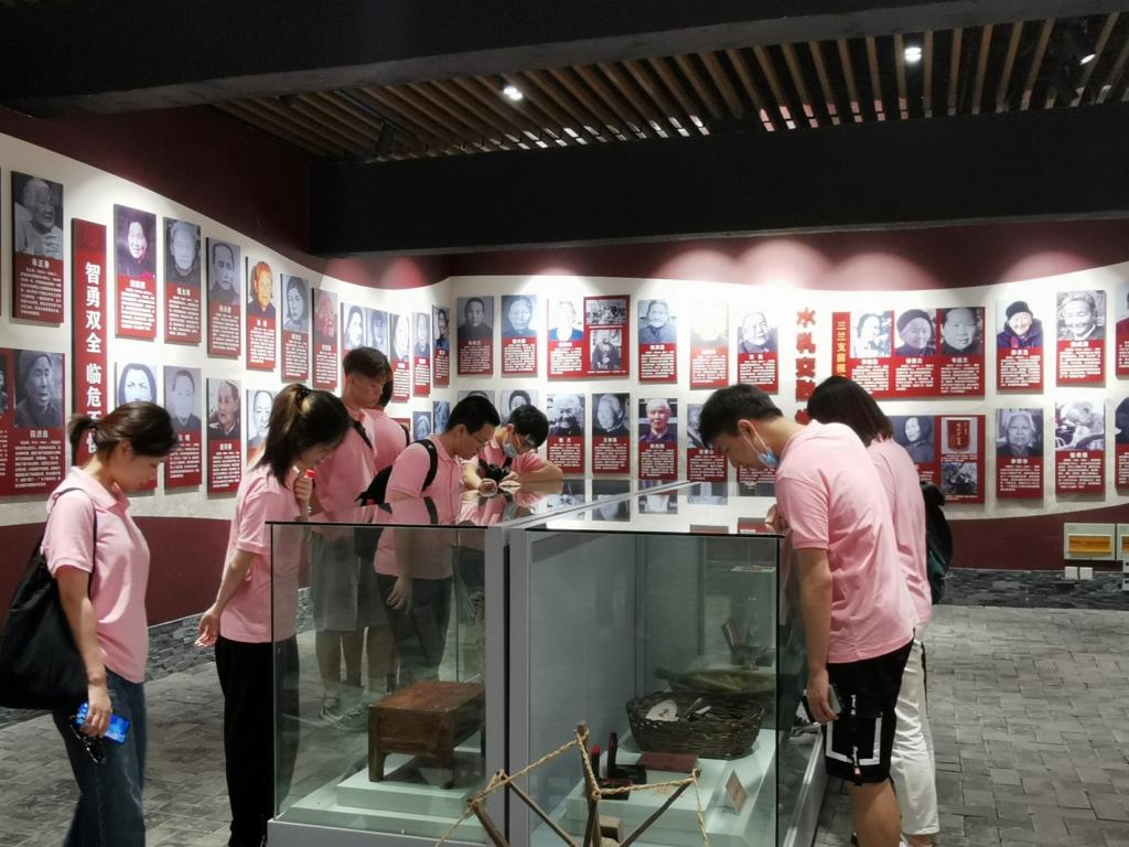 在主体展馆区,团队成员在《红色沂蒙山》展室了解了红嫂群体产生的历史背景:长达12年的人民战争中,沂蒙人民同仇敌忾,涌现了大批可歌可泣的英雄人物和一个伟大的女性群体——沂蒙红嫂。随后,团队成员来到各分展室,先后了解了红嫂原型明德英、沂蒙母亲王焕于、沂蒙大姐李桂芳、拥军妈妈胡玉萍等杰出的红嫂英雄的故事。透过一张张照片和珍贵的文物,我们看见岁月的痕迹,红嫂们的大义壮举和催人泪下的事迹浮现眼前,令人动容。