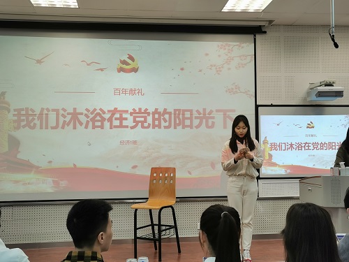 比赛伊始,王老师首先通过讲述班级风采大赛的举办历史作为开场,同时向同学们介绍了比赛规则。随后,预赛展示正式开始。经过精心的准备,同学们的预赛汇报都以建党100周年为主题,以丰富多彩的形式展现自己的精神风貌。