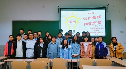 团委主办、马研部联合公共管理协会联合承办的第五届“公共管理”主题知识竞赛于2019年12月8日下午4点于虎溪校区艺术楼DYC101室正式拉开帷幕,来自学院19级共八只代表队伍开展了激烈的角逐,学办主任兼18、19级辅导员王丽娟作为指导老师现场观看比赛。