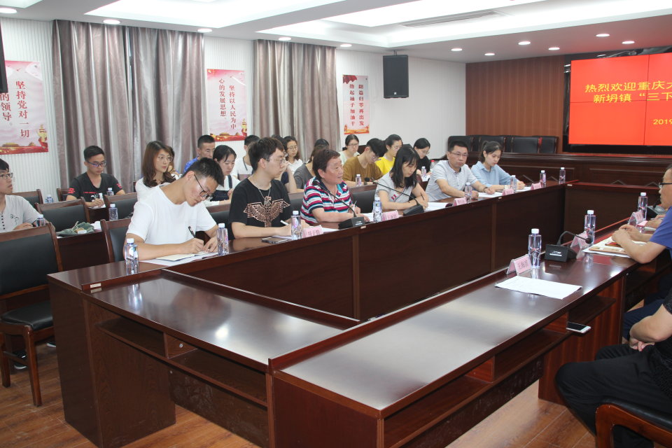 随后,学院学办主任兼17、18级辅导员王丽娟发言。首先,王老师对新坍镇的热烈欢迎和大力支持表示衷心的感谢,并介绍了今年三下乡团队的成员。经王老师介绍,今年另一位带队的龚宏龄老师,从北大走出来,拥有丰富的知识底蕴,给本次三下乡社会实践提出了许多指导性建议。学院暑期“三下乡”团队从2008年就开始走南闯北,从长白山到甘肃,甘肃到浙江,再到云南。十几年来,学院的三下乡实践团队团结一致,队员们同吃住、共吃苦,每年都获得“重庆市先进团队”的称号,曾获“团中央先进团队”两次,这都是大家共同努力的结果。