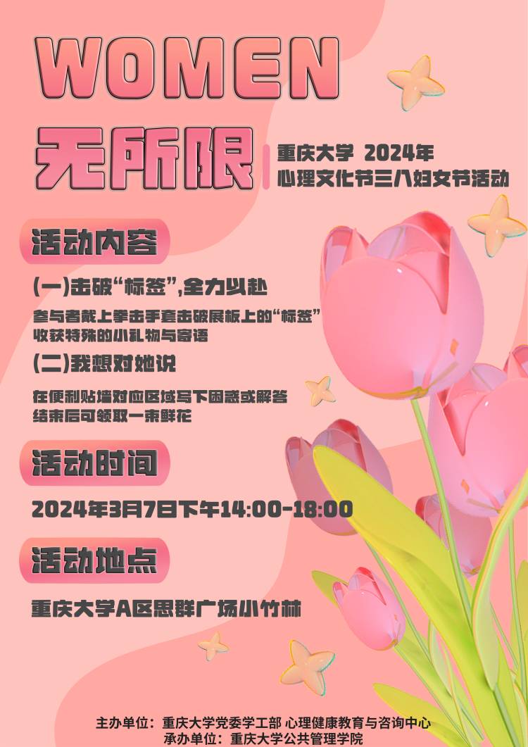 第十二届校园心理文化节之三八妇女节“WOMEN 无所限”特别活动于2024年3月7日下午14时于在线色情