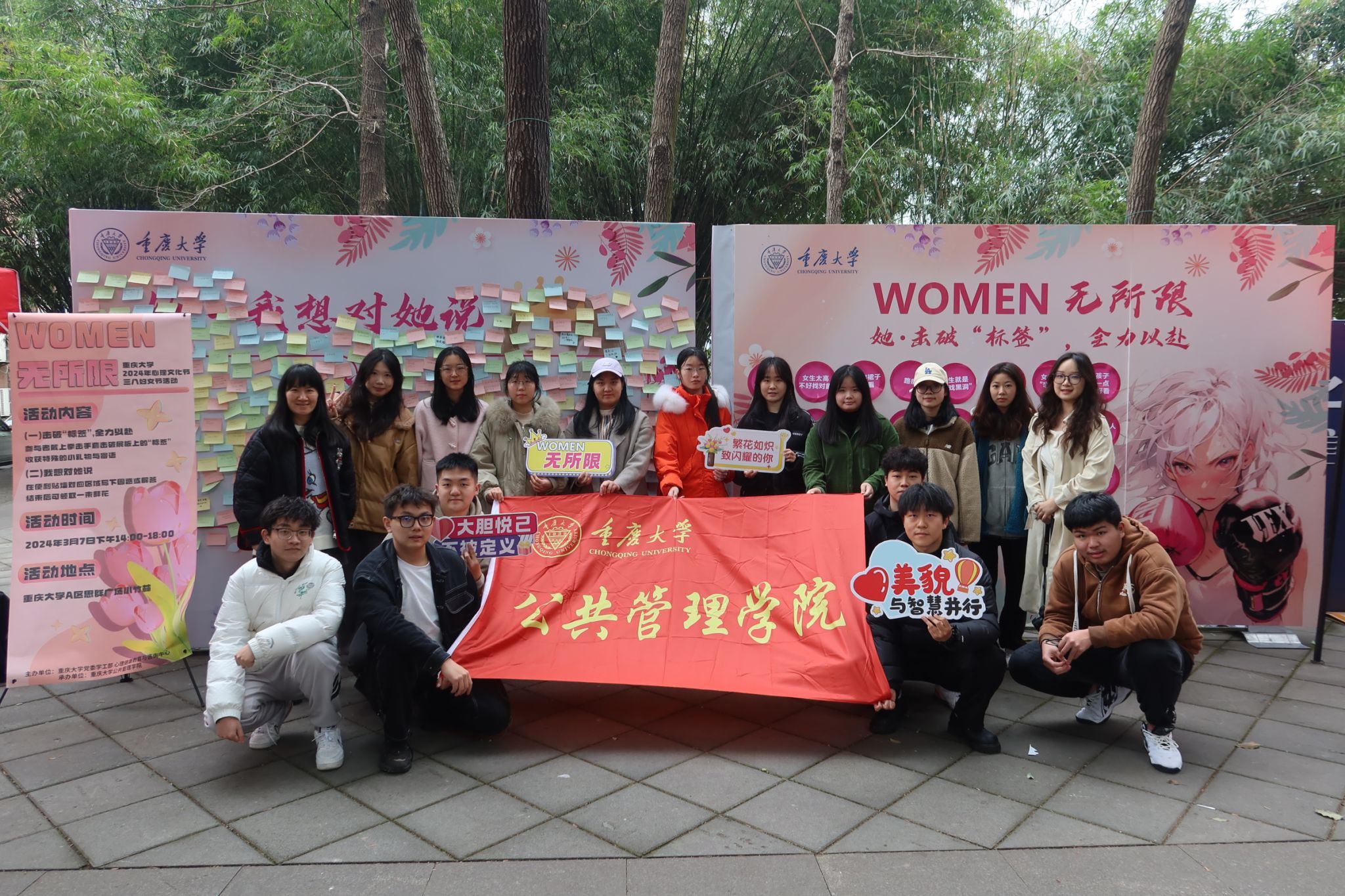 本次三八妇女节 “WOMEN 无所限”特别活动于当天下午18时圆满结束。本次活动旨在展示校园女性风采、关爱女性心理健康,提高学生积极心理素质水平和心理健康素养,也衷心祝愿广大女性朋友争做伟大事业的建设者、文明风尚的倡导者、敢于追梦的奋斗者,让巾帼力量尽显芳华。