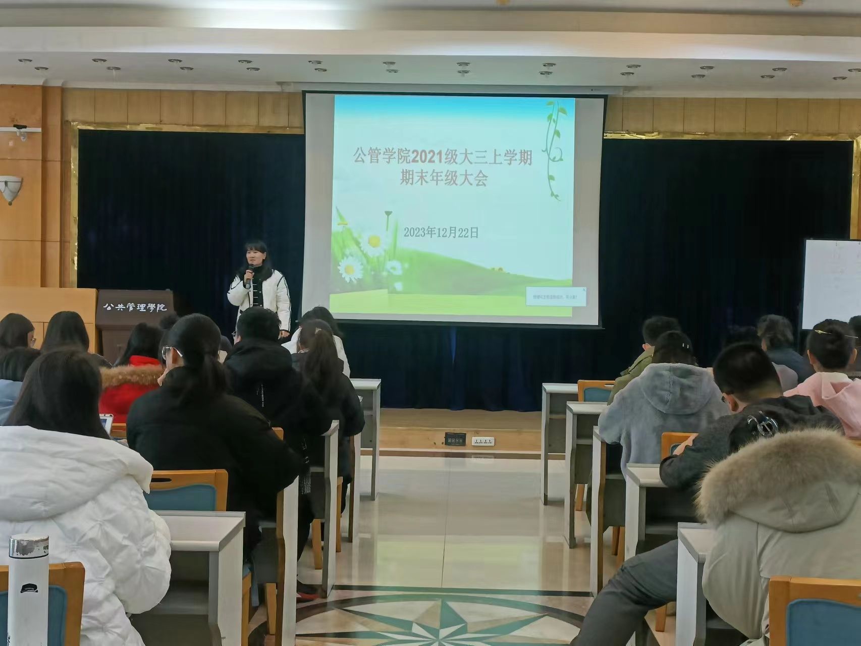 于学院楼202教室召开了2021级本科生学风、考风专题教育年级大会。本次会议由学院团委书记兼2021级辅导员徐柳主持,2021级全体同学出席本次会议。