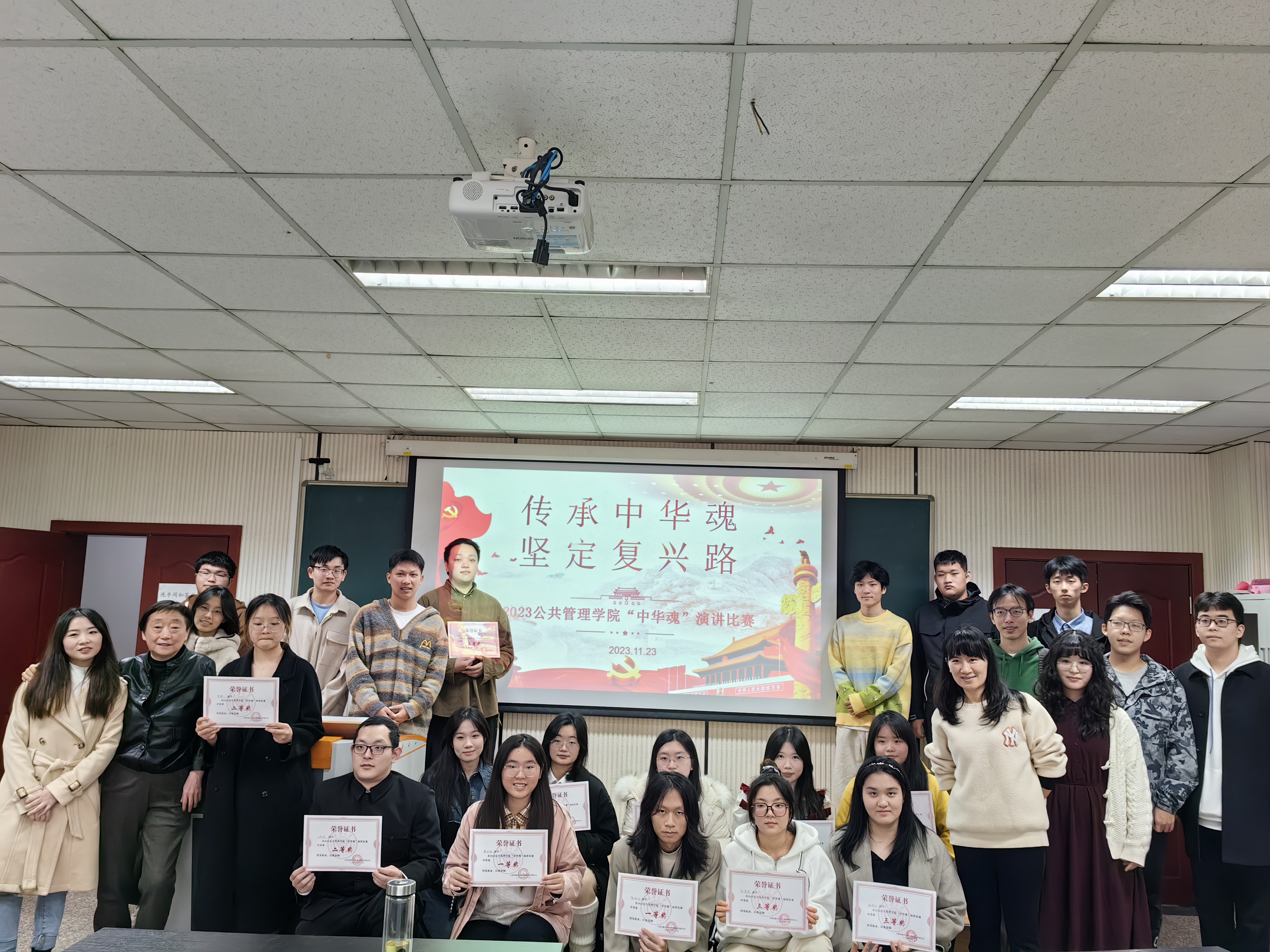 最后,经过评委打分评议,黄丹怡、陈柏润同学荣获一等奖;陈思思、王婧颐、王熙斌、罗静同学获得二等奖;吴悠等同学获得三等奖。希望通过本次比赛,公管学子们能赓续革命先辈精神血脉,守初心,担使命,自觉肩负时代赋予的责任,传承红色基因,书写华彩青春!