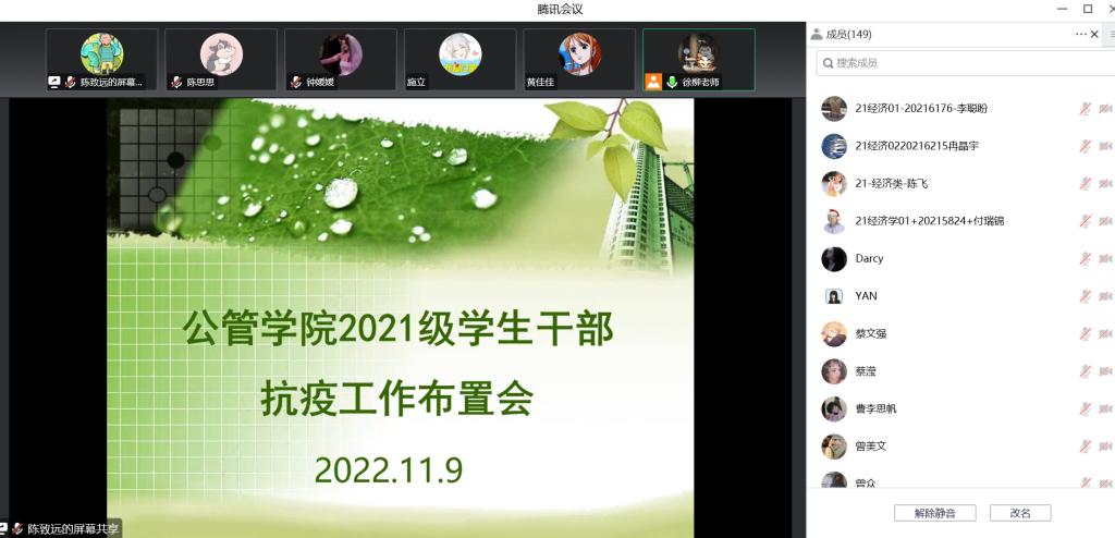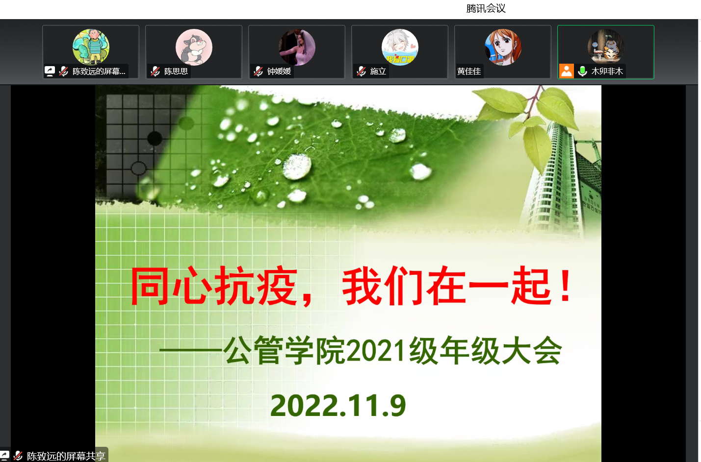 2021级本科生“同心抗疫,我们在一起”主题年级大会暨2021级学生干部抗疫工作布置会于线上顺利召开。