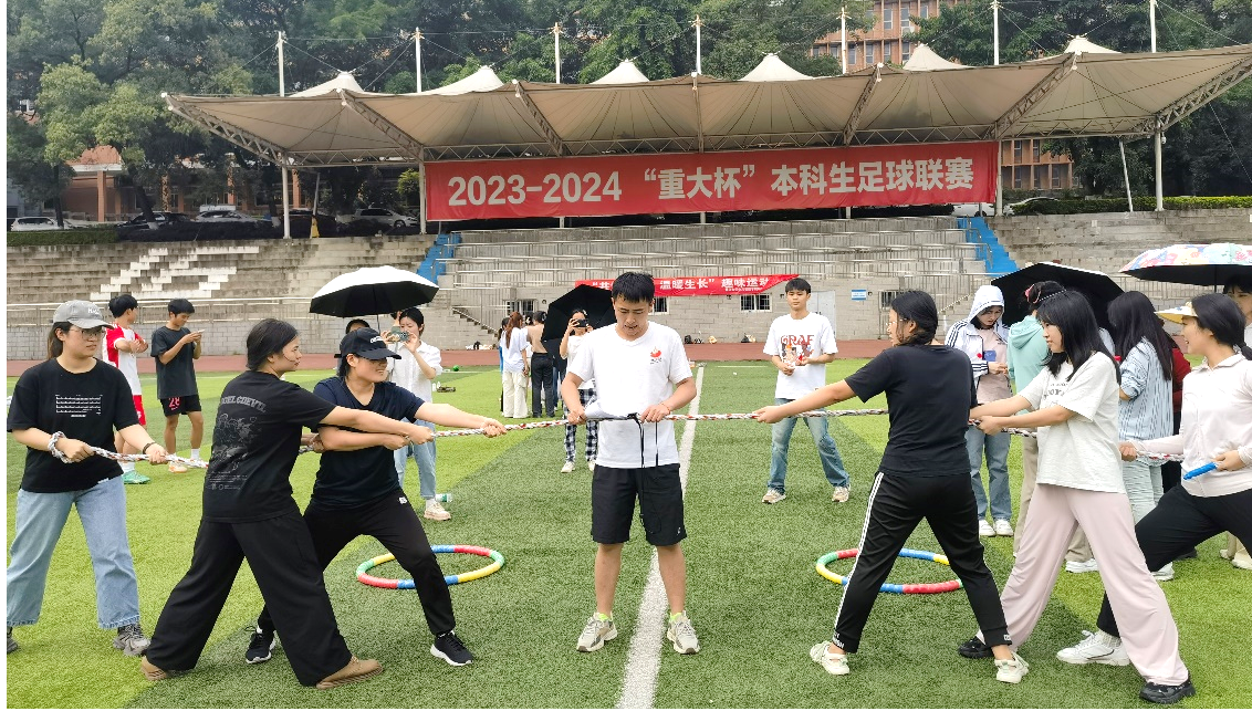 此次趣味运动会旨在丰富同学们的课余生活,提高团队协作能力,同时也为大家提供了一个展示自我、交流互动的平台。运动会共设置了六个趣味横生的比赛项目,包括“神龙摆尾”“圆来是你”“争分夺秒”和“你争我抢”四个体能类项目,以及“小心‘圈套’”和“你说我猜”两个益智类项目。这些项目巧妙地融合了挑战性与趣味性,让同学们在紧张刺激的比赛中感受体育运动的快乐和团队协作的重要性。