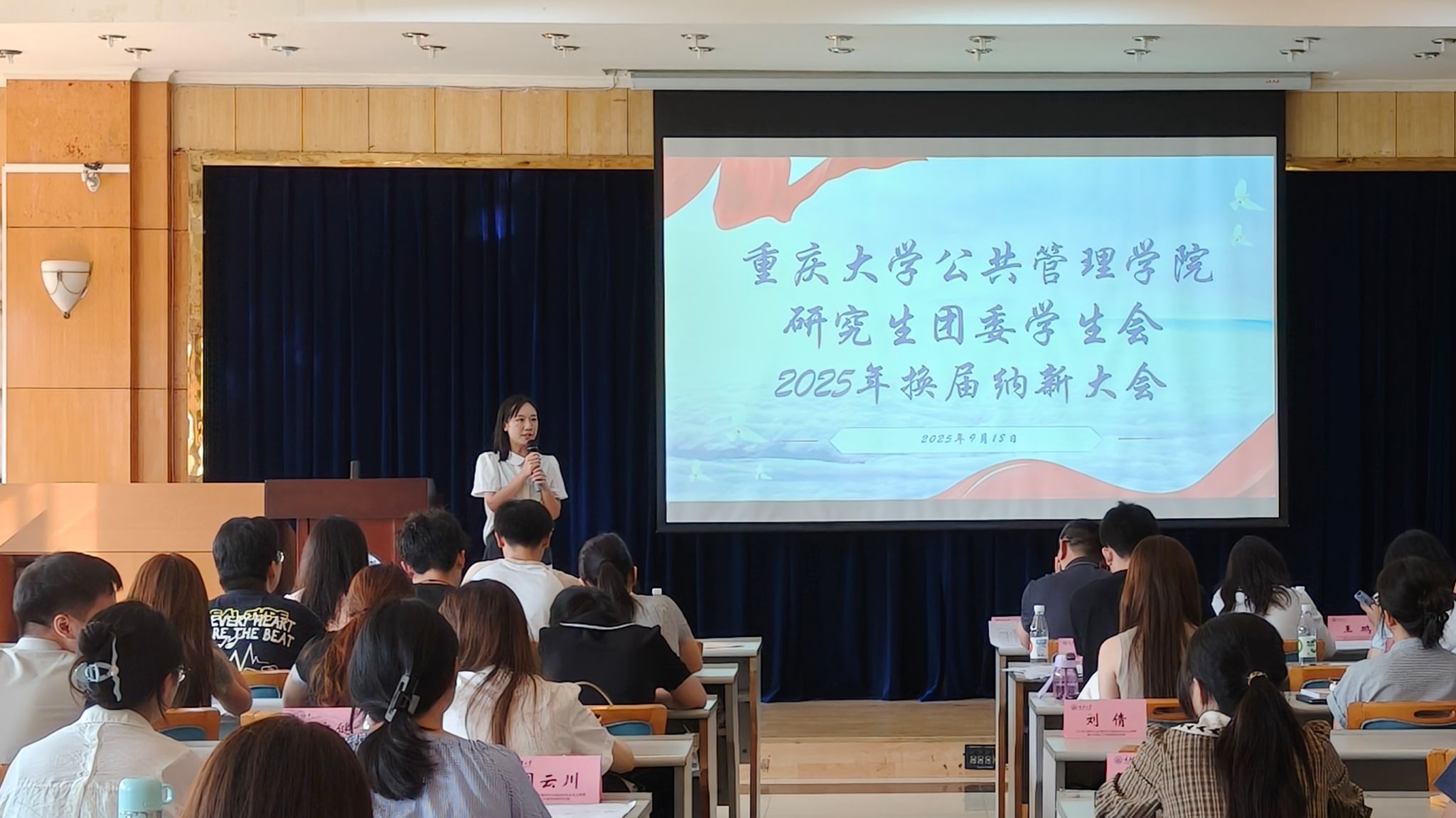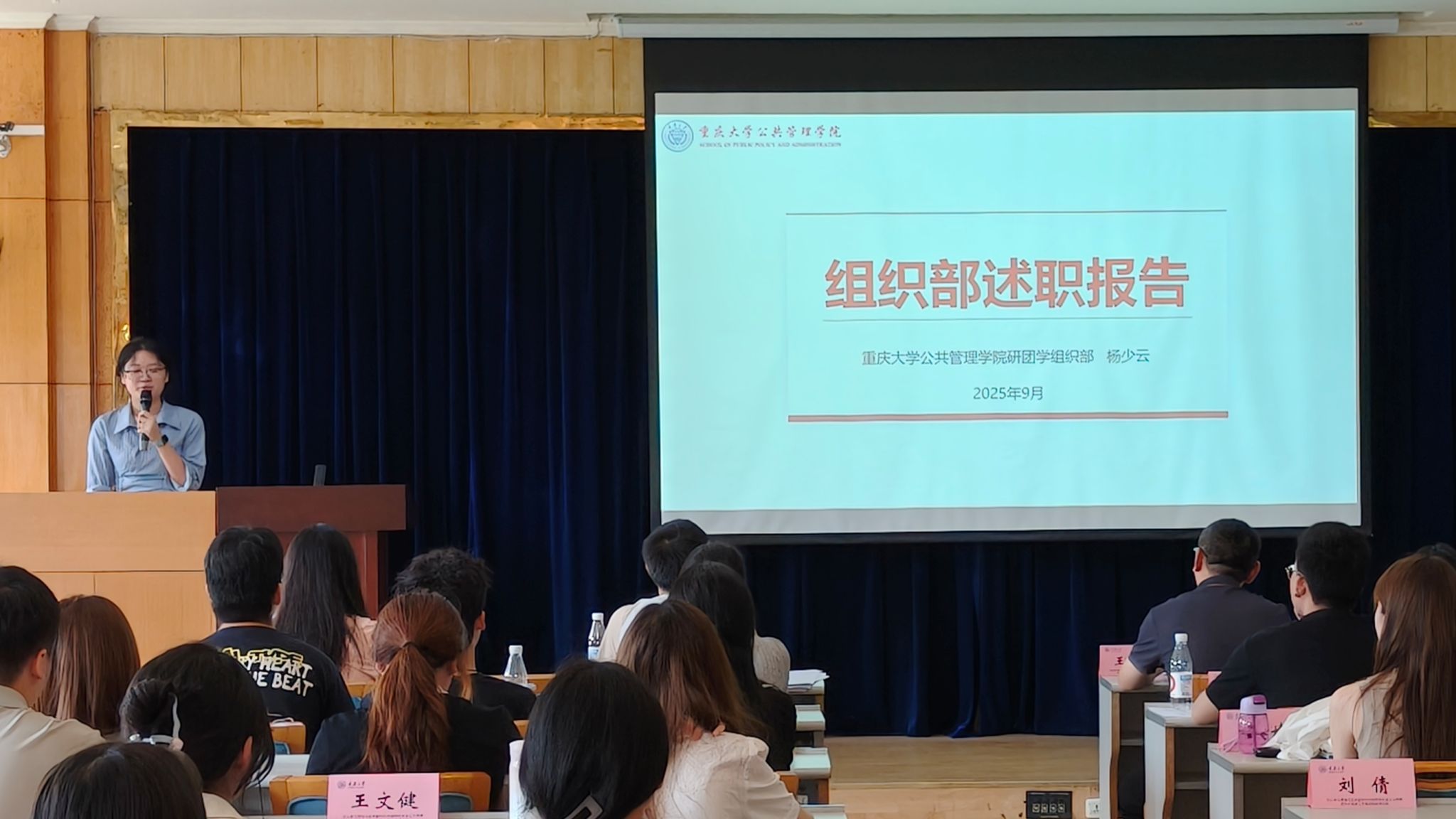 随后,研团学各部门部长依次开展述职工作。他们围绕本学年部门工作进行复盘,系统梳理了工作开展的完整流程,呈现出各项任务的推进细节与成果。过去一年里,各部门充分发挥能动性,策划并成功开展了多场形式多样、精彩纷呈的活动,丰富了同学们的研究生生活。