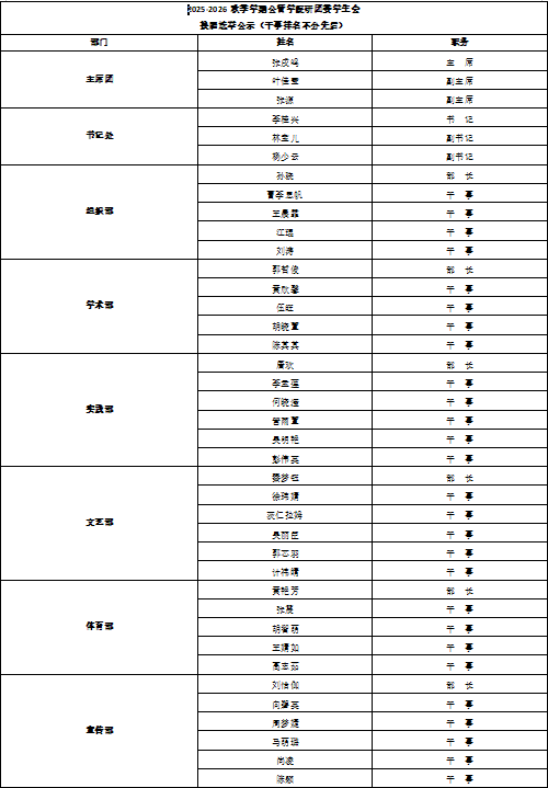 研团委学生会换届选举公示(干事排名不分先后)