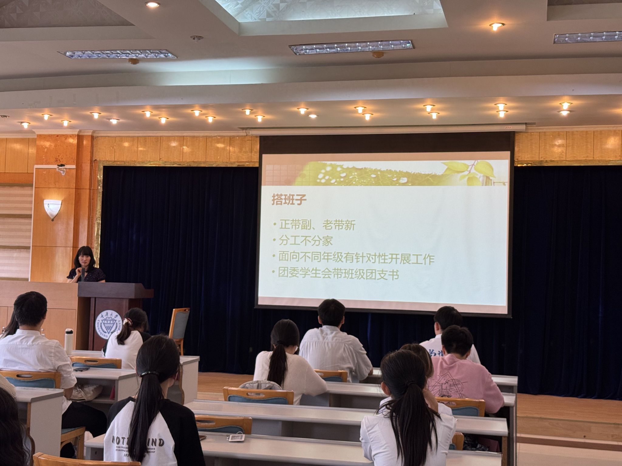团委学生会。她指出,在开展活动时,各部门成员应践行“正职带副职、老生带新生、分工不分家”的原则,加强新老干部及跨部门间的沟通,以促进团学组织蓬勃发展,营造和谐友爱的工作氛围。同时,徐老师强调工作应“面向不同年级有针对性地开展”,促进学院内部各年级间的联动,保障学生工作井然有序。此外,还需强化团委带动团支书、学生会带动班长的引领作用,保持全院上下一体、沟通顺畅、齐心协力。