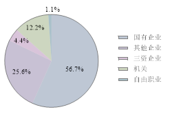 就业单位以国有企业为主体,去往国有企业共51人,接近60%占比,其中51%集中在建筑业,其次为27%在金融业;其次是其他企业(民营等),共23人,占比45%,分布在各个行业,主要分布在房地产业和制造业;三资企业有4人,分别在金融业、制造业和租赁商商务业;机关单位有11人,均为选调生或普通公务员;另有自由职业1人。