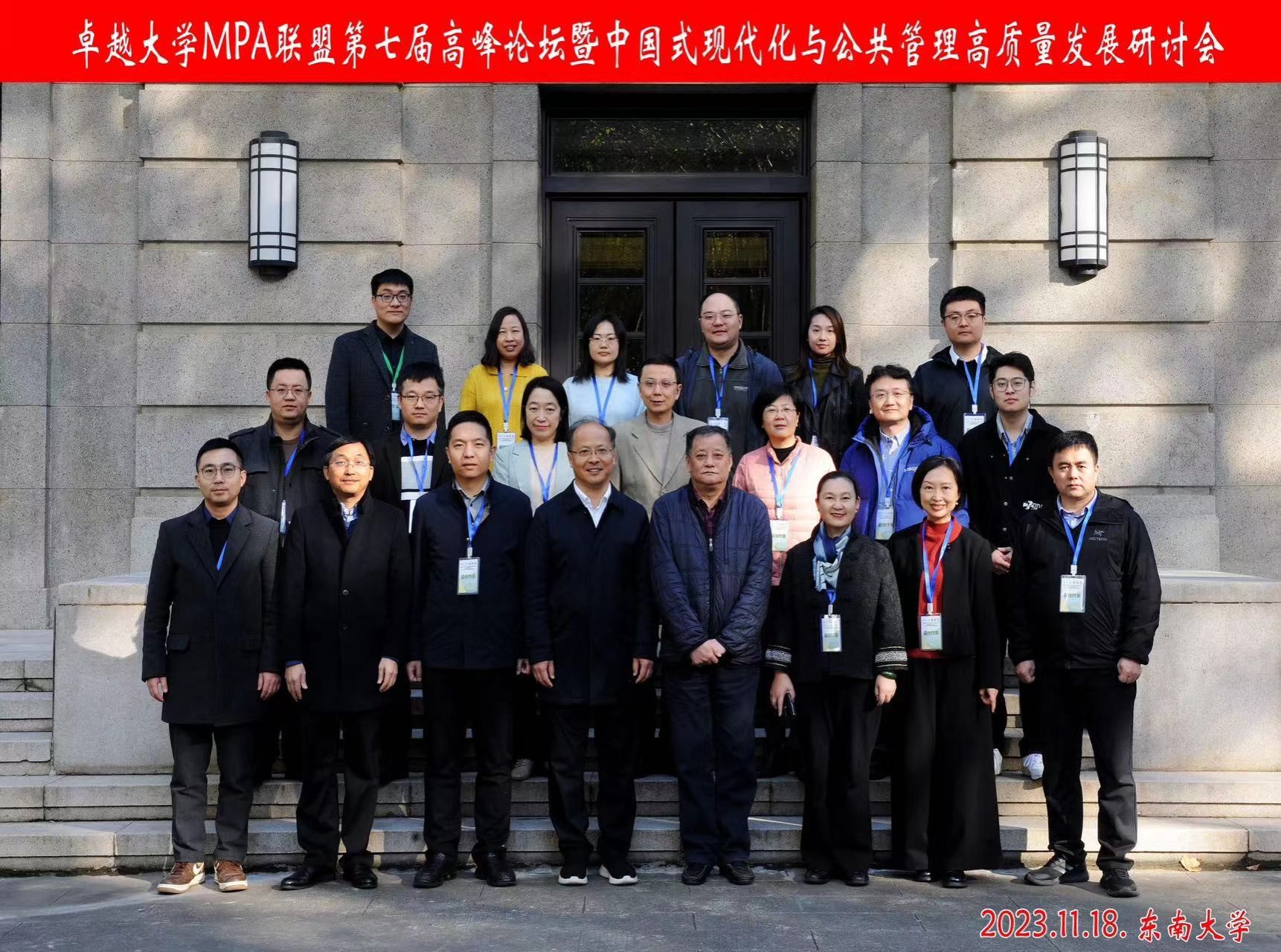 1118日,卓越大学MPA联盟第七届高峰论坛暨中国式现代化与公共管理高质量发展研讨会在东南大学隆重举行,北京航空航天大学知行书院院长郑晓齐教授,天津大学在线色情 院长傅利平教授、东南大学人文学院李涛书记、河海大学在线色情 院长朱新民教授以及来自哈尔滨工业大学、在线色情 、华南理工大学、天津大学、同济大学、西北工业大学、南京市机关事务管理局等单位的相关人员出席会议。在线色情 副院长汪涛教授、MPA教育中心主任谭志雄教授出席会议。